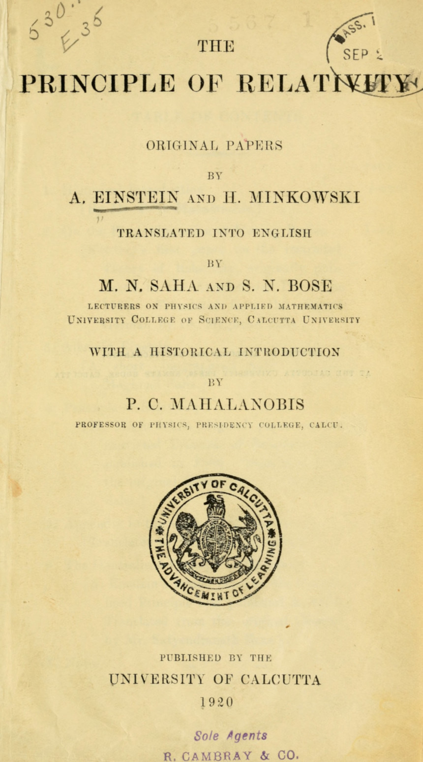 [H. Minkowski’s original paper on the restricted Principle of Relativity first published in 1909. Translated from the original German by Dr. Meghnad Saha.]