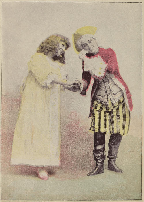 The fairy has touched her clothes with the magic wand, and Cinderella has become a being of marvelous beauty. Her gorgeous splendor dazzles the eyes of the Prince. She helps her sisters to their feet, and shows, as before, no resentment for past insult.