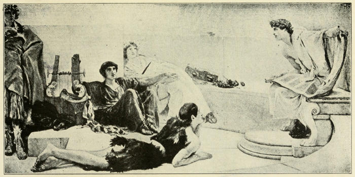 Now if we try to think of centuries of time going[36] by until in many countries primitive man is no longer primitive but begins to be more civilized, we shall find that certain groups of myths became crystallized into complete religious systems, such as existed in Egypt, Assyria, India, Greece, Persia, and many other countries. By this time the human race had attained to a much greater degree of self-consciousness. Men were beginning to understand both themselves and nature better, and they often could see the true causes for the events of nature going on about them. The next step was for them to begin to observe very carefully the systems of religious myths which had been handed down to them by their forefathers. Upon these they used their imaginative faculty, as man had earlier used it upon nature itself, with the result that they attached new meanings and gave fresh explanations of myths which had originally started as simple personifications of nature. In Greece, for example, Apollo, who was originally a personification of the sun, came to be regarded as the God of Music and Poetry; Athēne, who was originally the Dawn, became the Goddess of Wisdom; Hermes, originally the Wind, became the God of Eloquence and the leader of spirits. This is the way myths gradually grew to have philosophical or metaphysical meanings—that is, to stand as symbols of the deepest and most far-reaching thoughts of which the mind of man at that time was capable. Many of those thoughts are so profound and so wonderful that one needs to have a great deal of knowledge to understand them. All[37] that interests you now is to know that there are such thoughts and that some day you will want to know more about them.