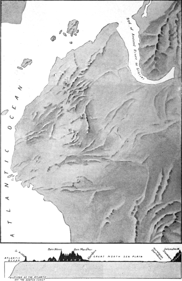 There are many other customs connected with the harvest of the sea, and innumerable legends and folk-tales wherein the chief part is played by some marine spirit or by a visitor—deity or mortal—to the mysterious realms of the deep. And deep it is, for, off the eastern coast of Northern Japan, the sea-bed falls abruptly to a depression—the famous Tuscarora Deep, called after the United States warship of that name—of 4,655 fathoms, nearly 28,000 ft., or more than five miles, probably the deepest sea-bed in the world. The encircling sea forms an important part of most of the beautiful pictures the scenery of Japan offers to the delighted eye. Whether the waves dash tumultuously against the precipitous rocks of the south-eastern side of the main islands, especially of Shi-koku and Kiū-shū; whether the waters dance in the sunshine in the countless bays and creeks of those coasts where the frequency of the shelter afforded to fishing-craft led to an earlier and more dense settlement than on the north-west coast of Hon-shū; whether the far-famed Inland Sea shines like a mirror under the moonbeams, or the Sea of Japan tosses its grey billows or spreads a sullen expanse under the pall of fog caused by the meeting of warm and cold currents—in all its moods the ocean forms part of nearly all the grandest scenery of Japan.