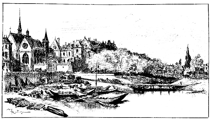 Ici, à la place des immenses murs de pierre qui l’encaissent aujourd’hui et contiennent aux grandes eaux ses désirs de flâneries en dehors du lit régularisé, c’est à cette époque une verdoyante plaine basse, aux arbres mouillés, que nous apercevons, un marécage où le vent fait onduler avec de soudains et harmonieux frissons, les longues étendues de roseaux où s’abritent des barques de pêcheurs, et sur lesquels planent des vols d’oiseaux de rivière et tournoient les canards sauvages.