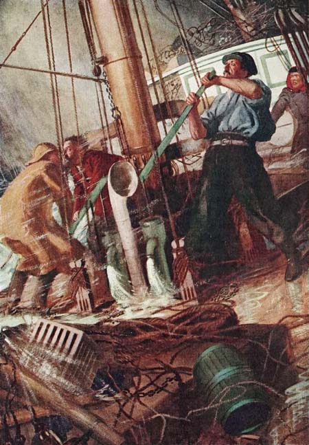 Meanwhile, firemen were coming up from below; and each set who came up reported that the water was pouring into their stokeholds.