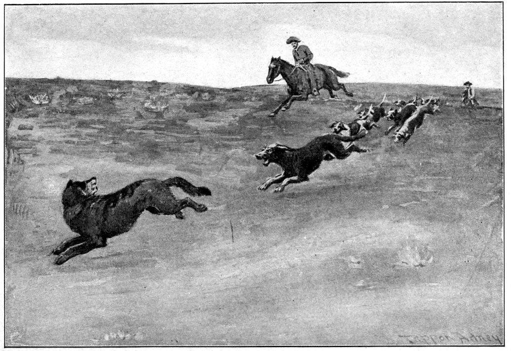Of course there were no pretence of giving the game fair play. The wolves were killed as vermin, not for sport. The greatest havoc was in the spring-time, when the she-wolves were followed to their dens, which were sometimes holes in the earth and sometimes natural caves. There were from three to nine whelps in each litter. Some of the hounds were very fast, and they could usually overtake 62a young or weak wolf; but an old wolf-dog, with a good start, unless run into at once, would surely get away if he were in a running trim. Frequently, however, he was caught when he was not in running trim, for the hunter was apt to find him when he had killed a calf or taken part in dragging down a horse or steer. Under these circumstances he could not run long before the pack.