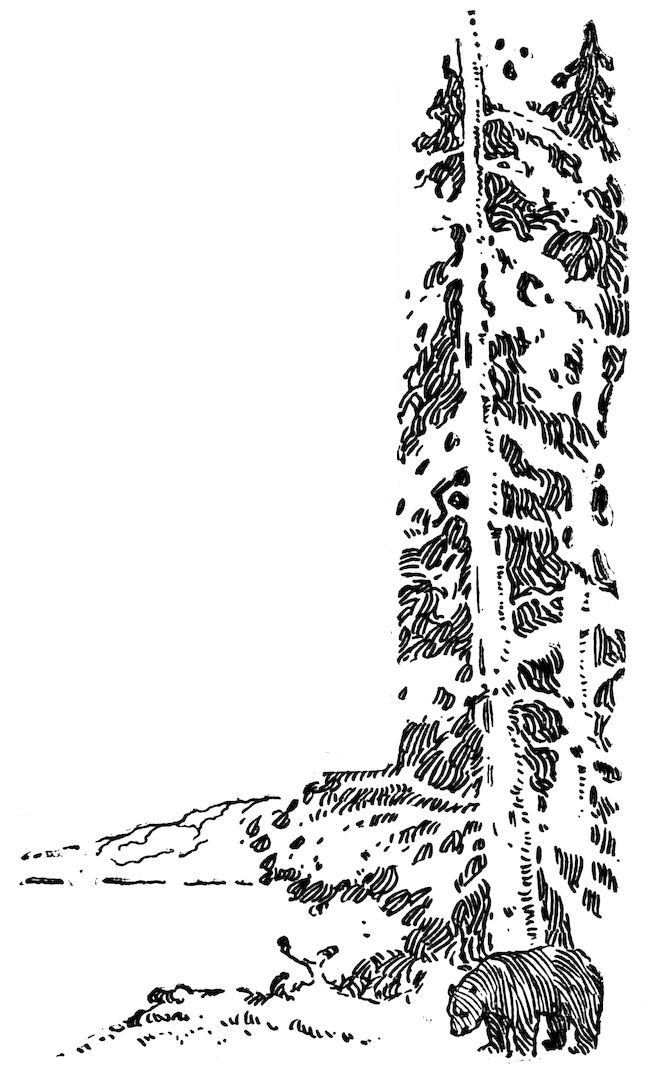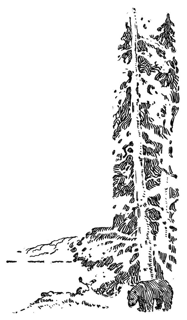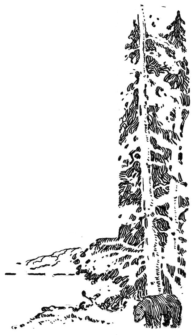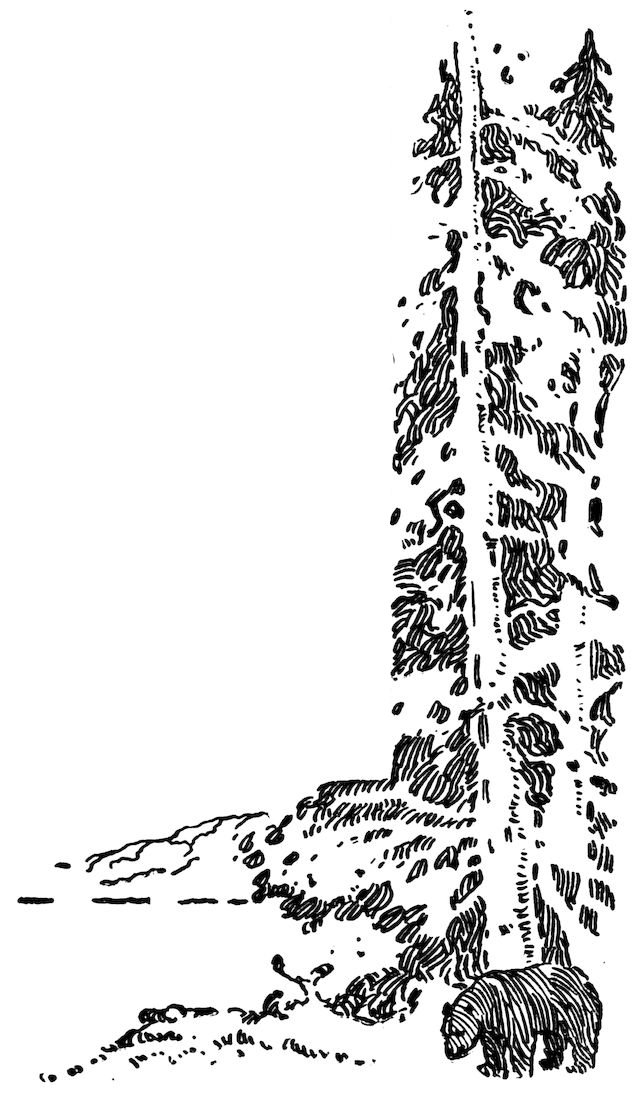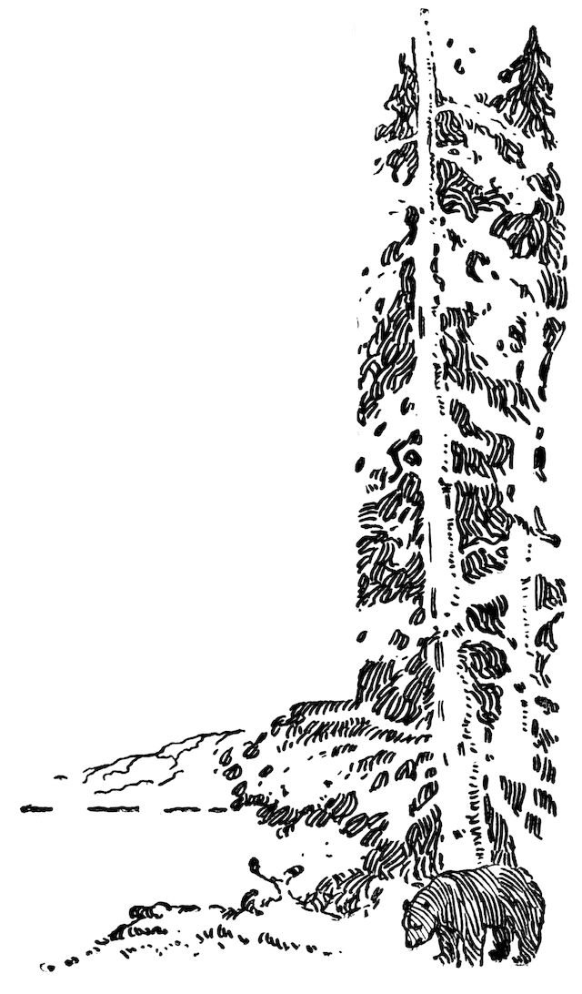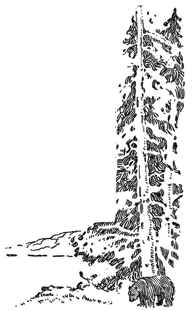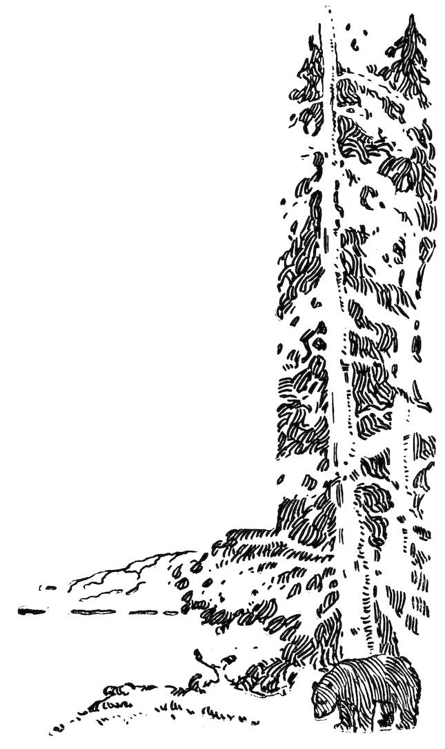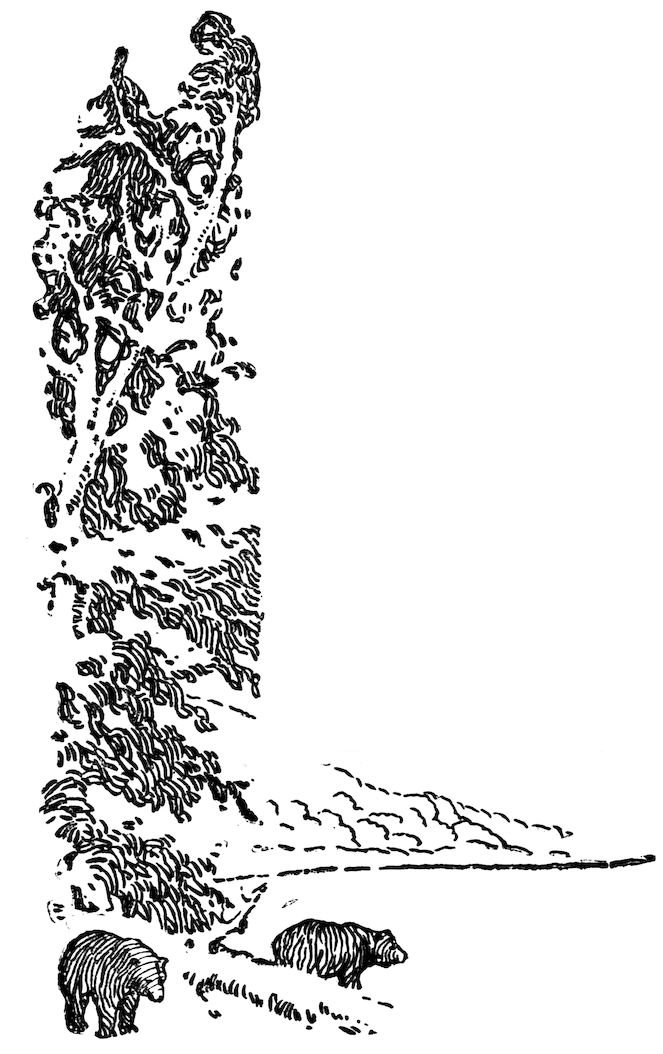 Usually the bears live almost exclusively on roots, berries, insects, and the like. In fact, there is always something grotesque and incongruous in comparing 30the bear’s vast size, and his formidable claws and teeth, with the uses to which those claws and teeth are normally put. At the end of the season the claws, which are very long in spring, sometimes become so much blunted as to be tender, because the bear has worked on hard ground digging roots and the like.