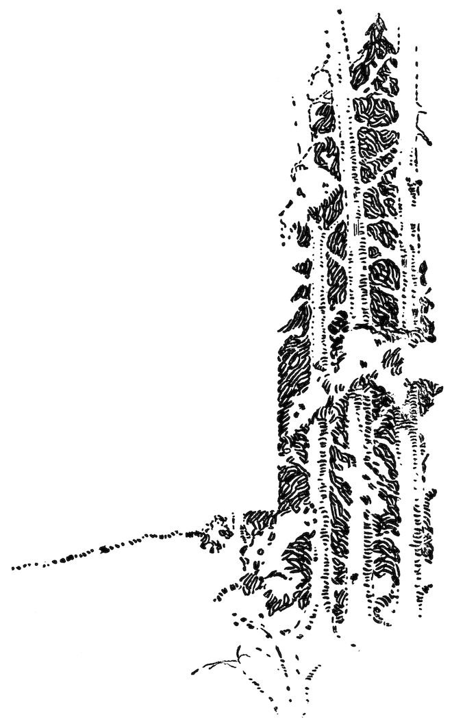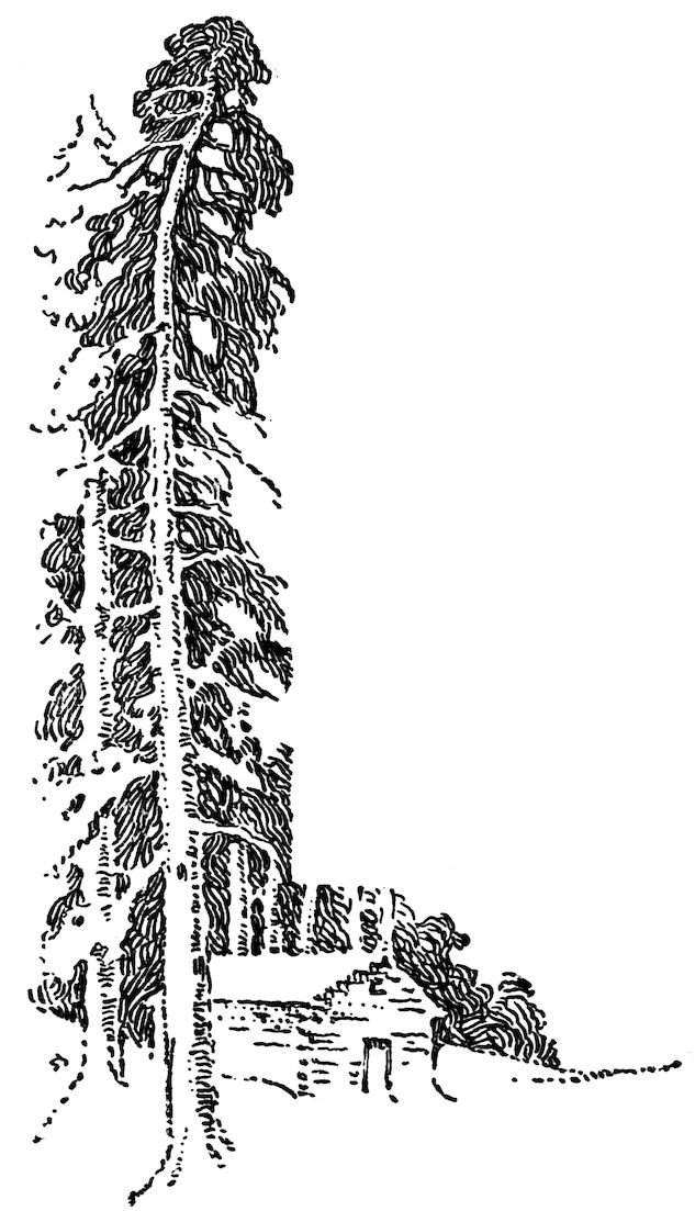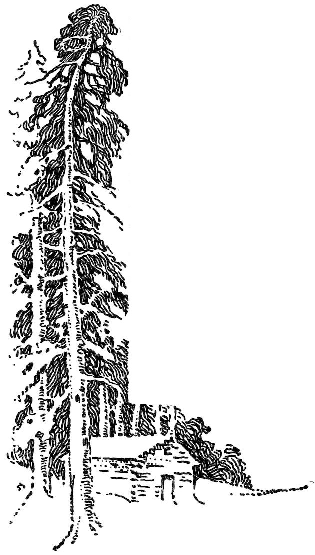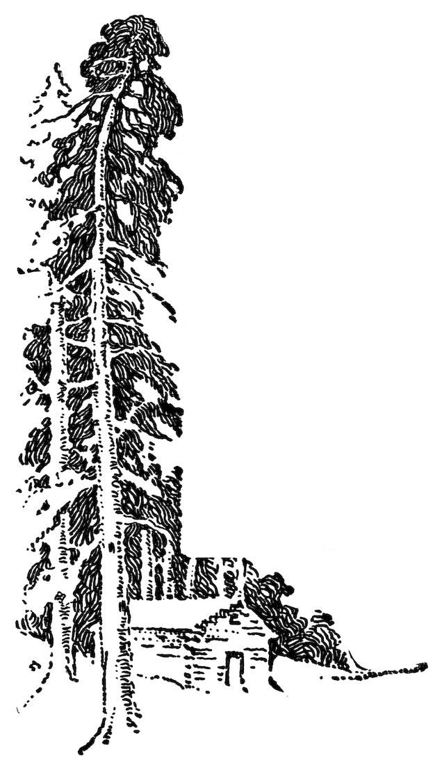 Its favorite abode was the roof of the cabin, at one corner of which, where the projecting ends of the logs were uneven, it speedily found a kind of ladder, up which it would climb until the roof was reached. Sometimes it would promenade along the ridge, and at other times mount the chimney, which it would hastily abandon, however, when a fire was lit. 92The presence of a dog always resulted in immediate flight, first to the roof, and then to the chimney; and when it came inside the cabin it was fond of jumping on a big wooden shelf above the fireplace, which served as a mantel-piece.