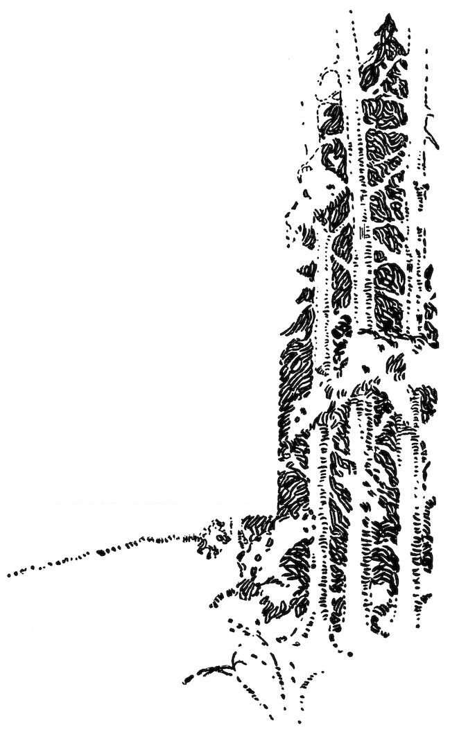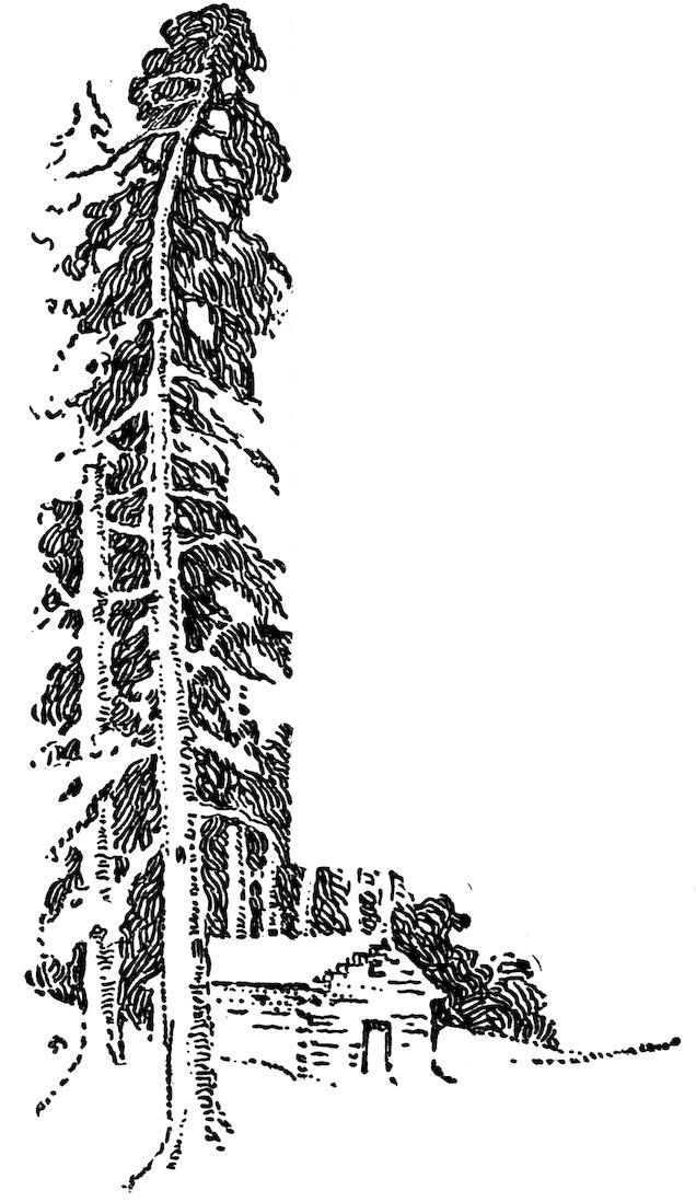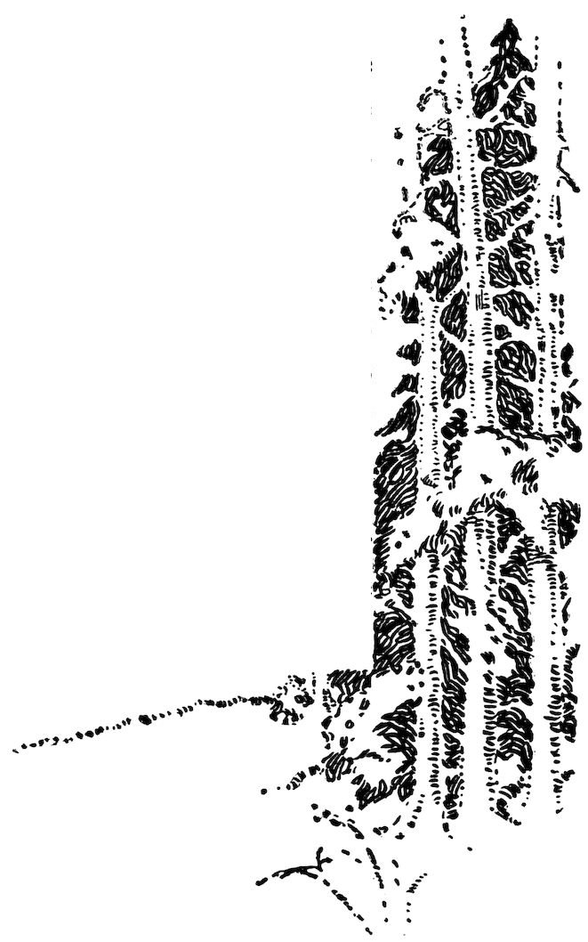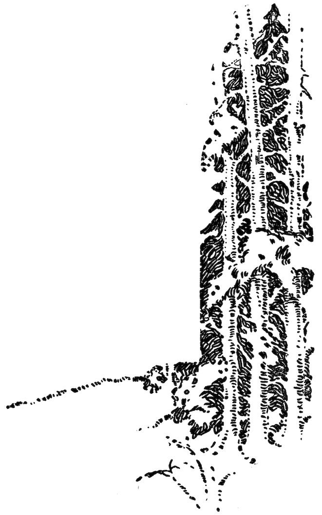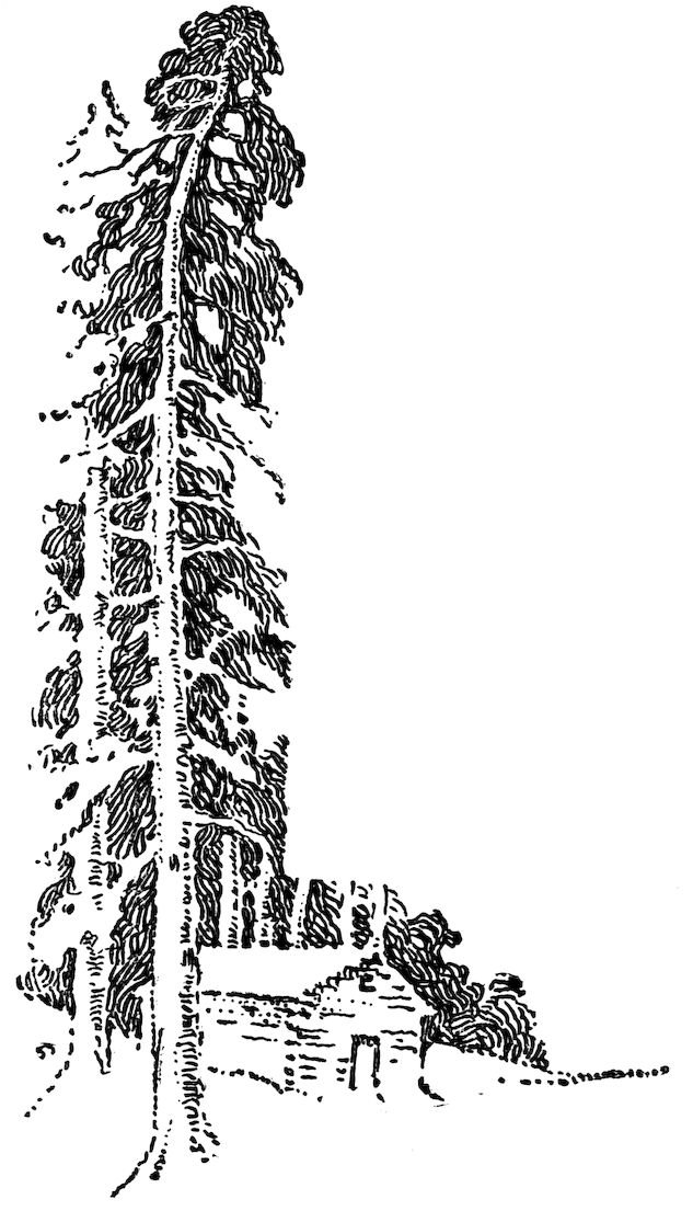 Its favorite abode was the roof of the cabin, at one corner of which, where the projecting ends of the logs were uneven, it speedily found a kind of ladder, up which it would climb until the roof was reached. Sometimes it would promenade along the ridge, and at other times mount the chimney, which it would hastily abandon, however, when a fire was lit. 92The presence of a dog always resulted in immediate flight, first to the roof, and then to the chimney; and when it came inside the cabin it was fond of jumping on a big wooden shelf above the fireplace, which served as a mantel-piece.