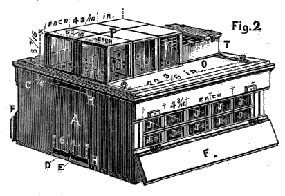 Figure III., on next page, is a perspective view of a set of side surplus honey boxes and their inclosing frame, with measurements of the different parts.