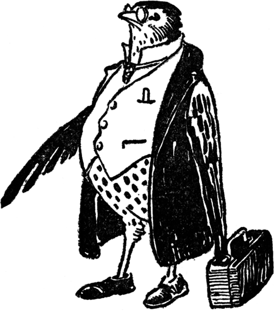 He said, “You remember that the Heron was to go with you and show you a short cut through the marshes. Perhaps it is just as well for you that he had appendicitis, as he always stops a long time to get his evening meal. Then if he is startled he flies at once to a tree. Moreover,[Pg 116] he is rather apt to pick a quarrel. It is thought by some of the best authorities in Birdland that his appendicitis came from eating too heartily one night and quarreling violently afterwards.”