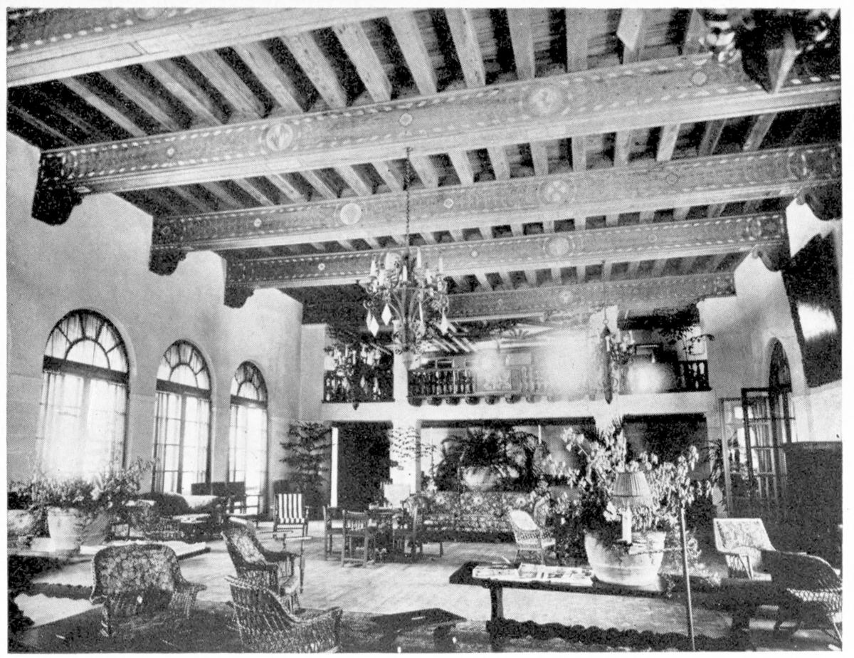 The living-room of the Everglades Club, smart and exclusive retreat of Palm Beach’s smartest habitués.