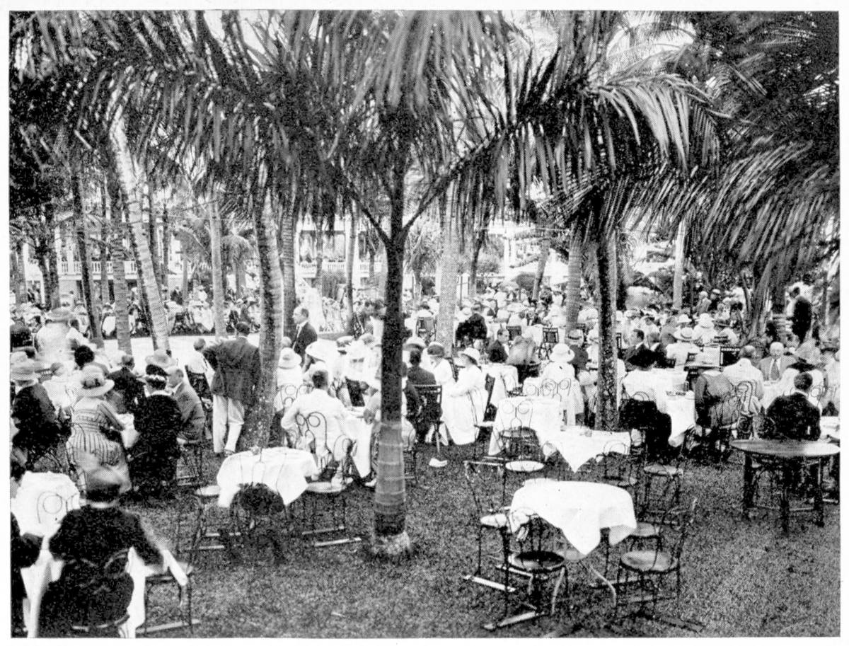 The people who knew Miami prior to 1918 have in their minds an entirely different place from the Miami of to-day. The old Miami was a city first and a winter resort afterward. This statement will, of course, offend the touchy Miami folk; but it is true none the less. It was—and is—a hustling, bustling, booming, noisy city with about one automobile for each seven-eighths of an inhabitant, and with perpetual warmth and sunshine. In the long run, however, the big-money tourists don’t want to go to a hustling, bustling, rapidly growing city for their winter holidays, even though the city may boast perpetual warmth and sunshine.{166} What they want is clean air and plenty of sun and sky, and a complete change from the scenery to which they are accustomed in their northern cities, and a surcease from all noises except the noises they make themselves—which are frequently much louder than the ordinary noises of a city. For that reason Palm Beach was in a class by itself. The big-money tourists went to Palm Beach. Miami got a smattering of them, but a very small smattering. Palm Beach sneered at Miami Beach and called it “the Coney Island of Florida.”