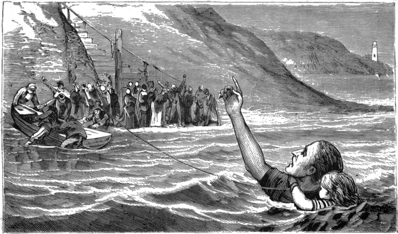 “Put your hand on my shoulder,” said the parson. “I can get you both ashore.”