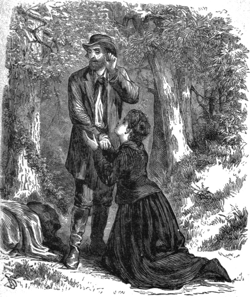 “God’s worst curses on all of you!” cried the woman, with an energy which inspired her plain face and form with a terrible dignity and power, “if you lay a hand on a man who is the only friend a poor woman has ever found in the world!”