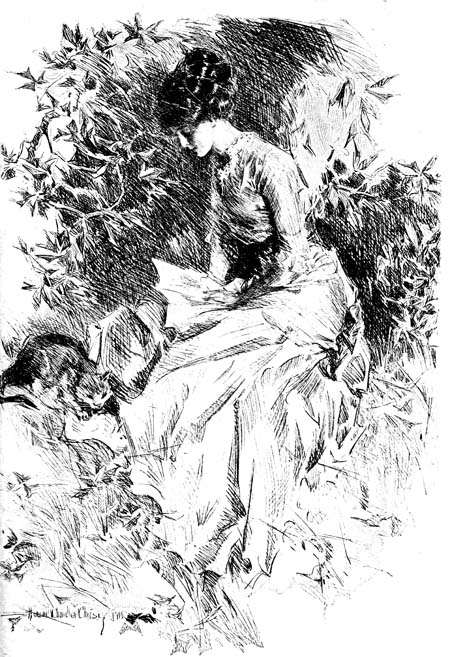 Barnes, who had opened his portfolio with an idea of sketching the spot, closed it again, tying it in one of those hard knots which invariably in the end he had to cut. But he was checked by a sound from the direction of the letter-box. At first he thought it was a distant whip-poor-will. It was low and had the same note of subdued pathos.[19] Then he concluded that it was a straggling brook running with gentle sobbing among the ferns. But the peculiar sound soon became more individualized. It took on a human note; then a feminine. Finally he awoke to the fact that it was nothing else but the sobbing of a woman. He strode up the grass-grown road to the hidden stretch beyond the fringe of trees. There he found himself confronting a young woman who was kneeling upon the grass, bowed above an open letter in her lap.