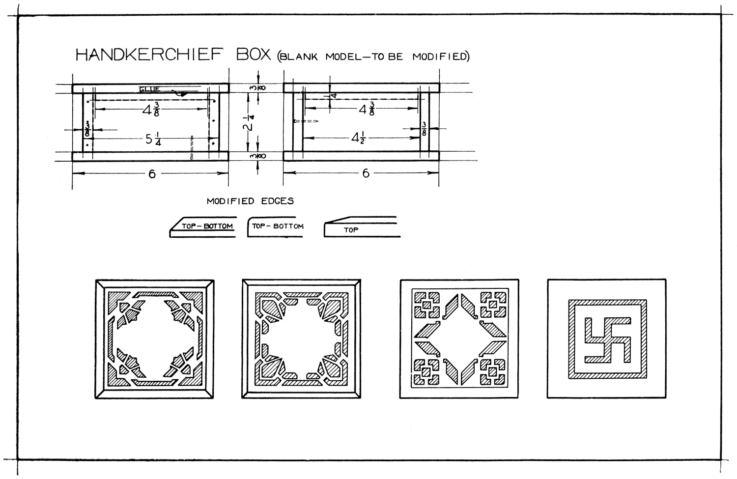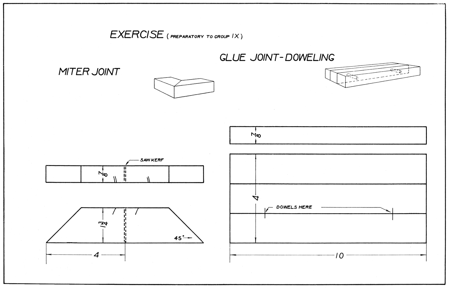 | Chapter X—Drawings of Projects, for use in High Schools. Group IX—Mortise-and-tenon Joints, Miter Joint, Glue Joint, Modeling Exercise—Applications. Group X—Dovetail Joints, Rabbeted and Grooved Joints—Applications | 187 |