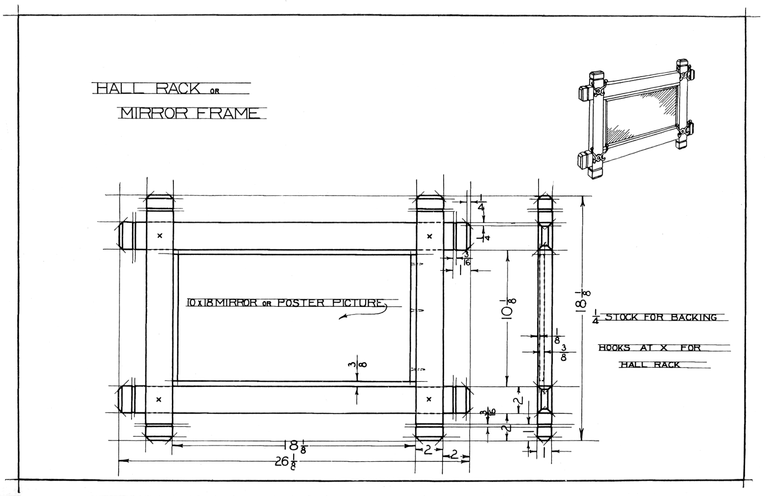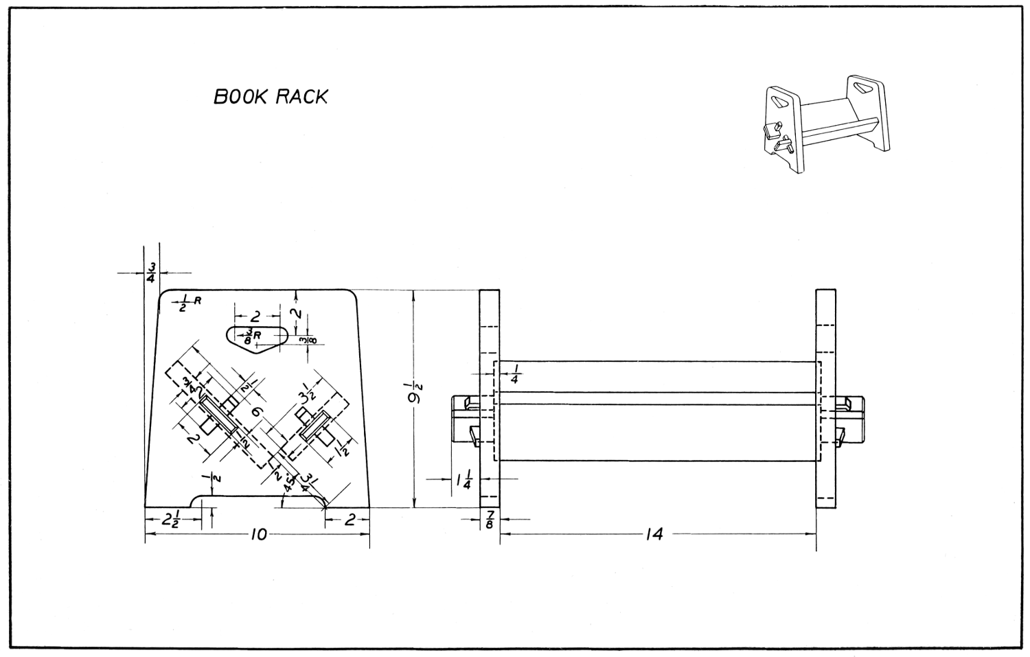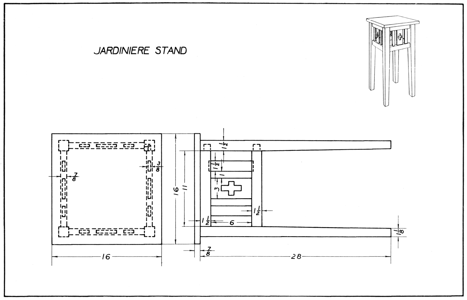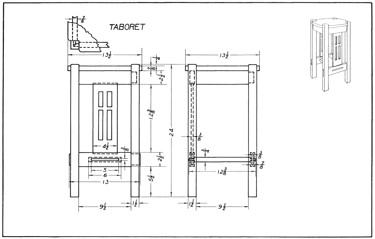 For the convenience of the teachers, the drawings used in “Projects for Beginning Woodwork and Mechanical Drawing” and “Advance Projects in Woodwork” are printed in this book. The notes and working directions, however, are not included. The inking of the drawings and the making of the perspectives in both of these books is the work of Mr. George Gordon Kellar.