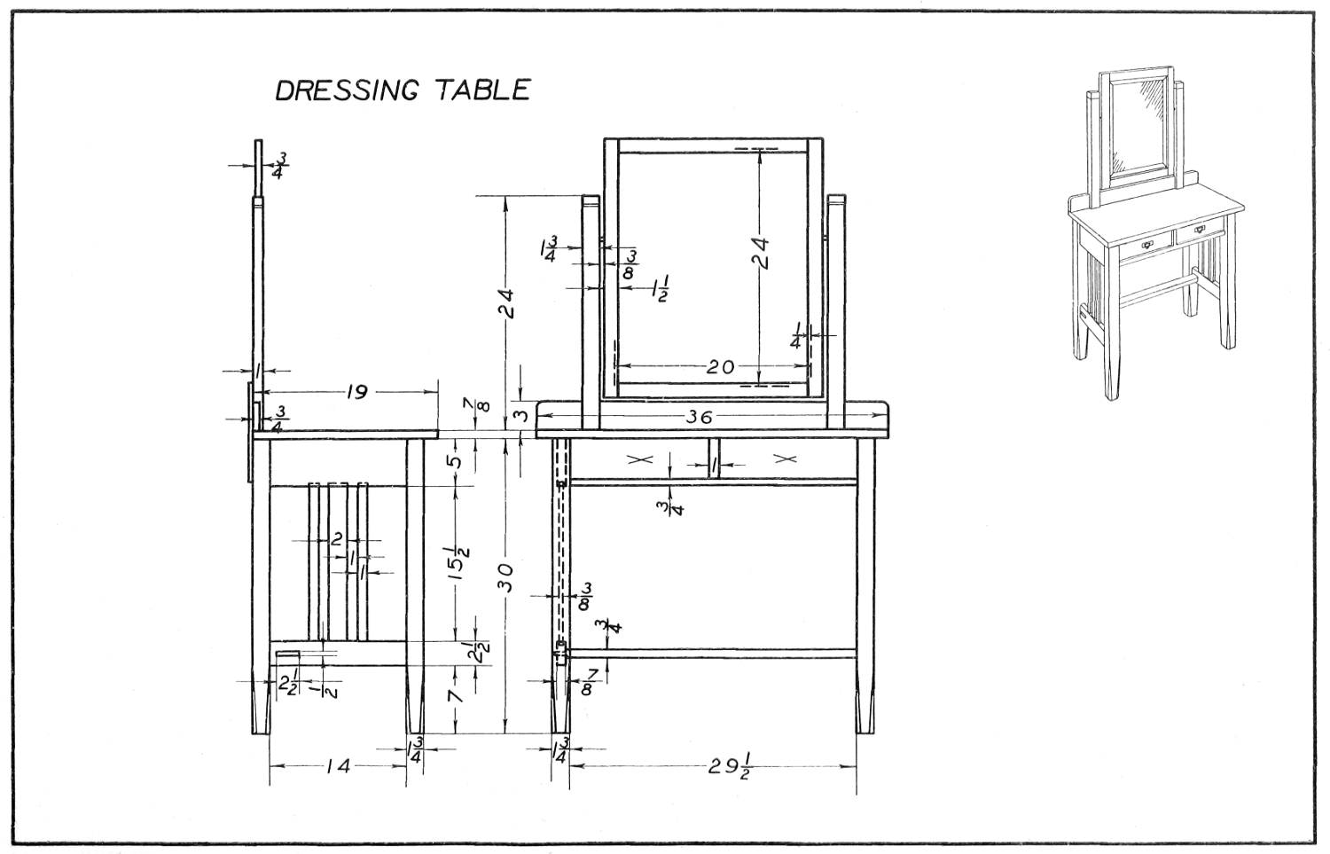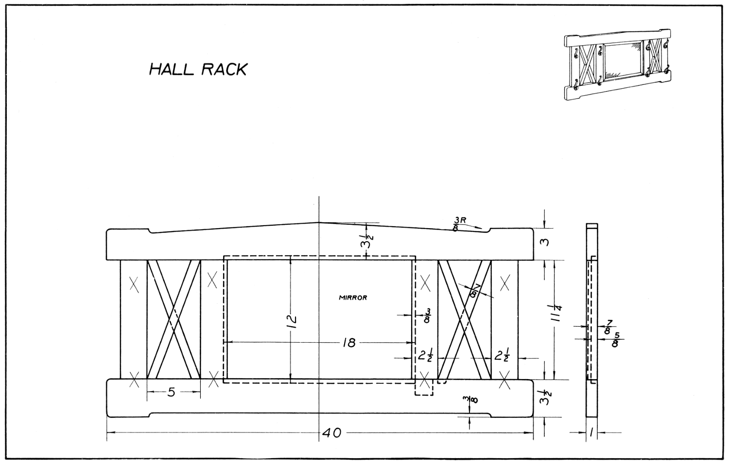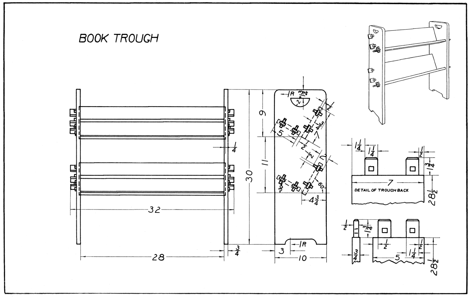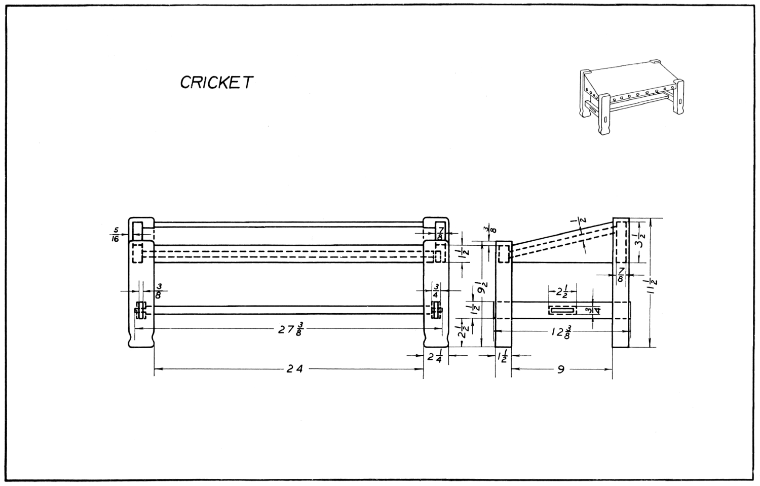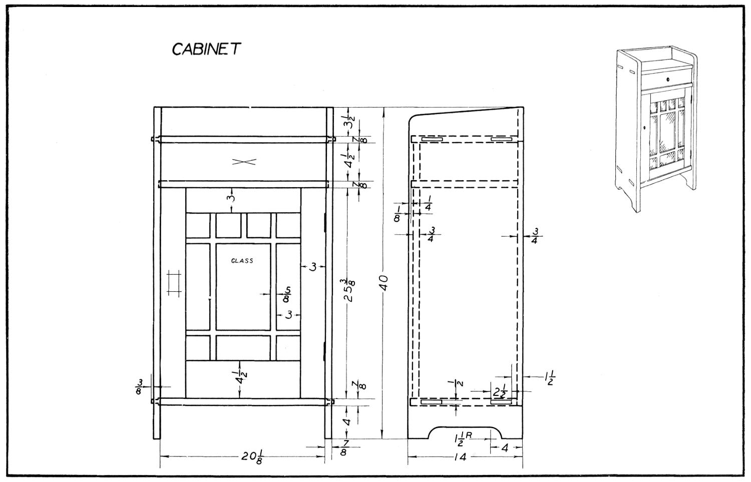 For the convenience of the teachers, the drawings used in “Projects for Beginning Woodwork and Mechanical Drawing” and “Advance Projects in Woodwork” are printed in this book. The notes and working directions, however, are not included. The inking of the drawings and the making of the perspectives in both of these books is the work of Mr. George Gordon Kellar.