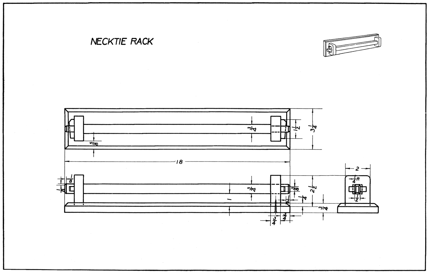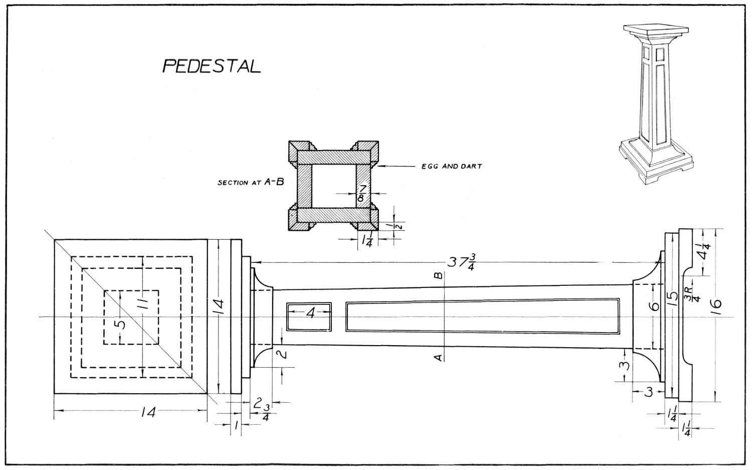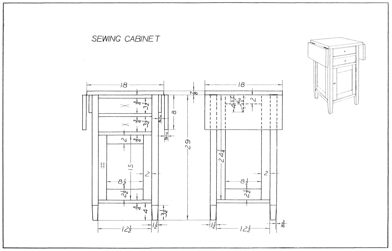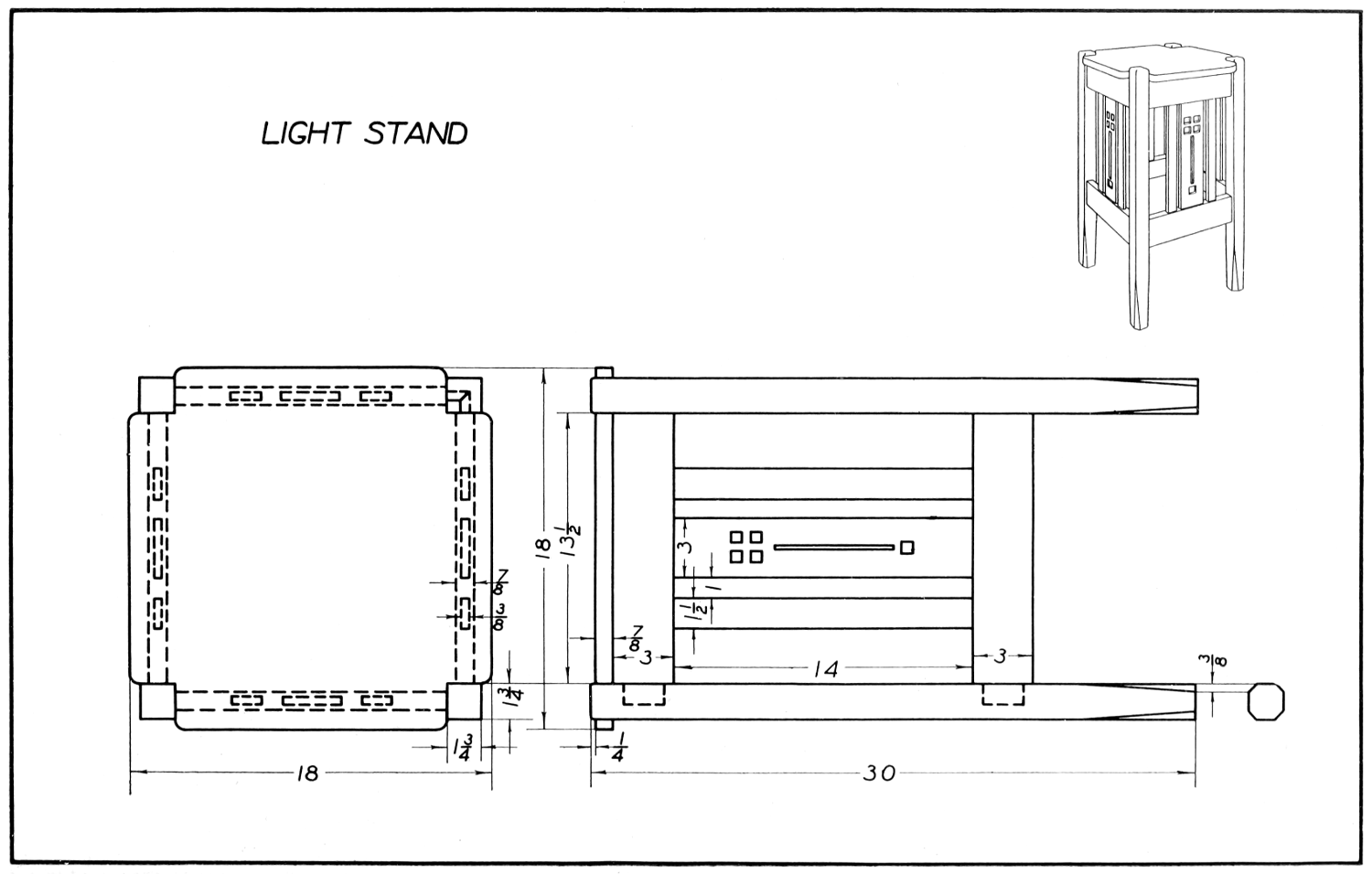 For the convenience of the teachers, the drawings used in “Projects for Beginning Woodwork and Mechanical Drawing” and “Advance Projects in Woodwork” are printed in this book. The notes and working directions, however, are not included. The inking of the drawings and the making of the perspectives in both of these books is the work of Mr. George Gordon Kellar.