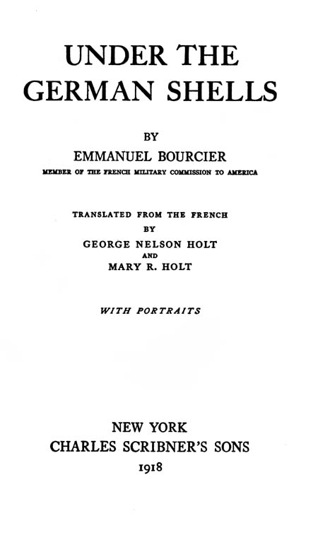 This book, Under the German Shells, is another instance of war’s uncertainties. Sent by my government to America to join the new American army as instructor, I wrote the greater part of the book on the steamer which brought me. The reader will, perhaps, read it when I am dead; for another steamer is about to carry me back to France, where I shall again be “under the German shells,” before the book will see the light.