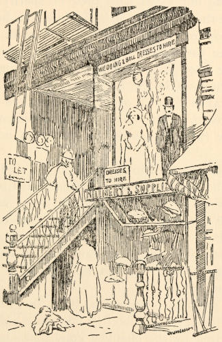 The child led me over broken roadways,—there was no asphalt, although its use was well established in other parts of the city,—over dirty mattresses and heaps of refuse,—it was before Colonel Waring had shown the possibility of clean streets even in that quarter,—between tall, reeking houses whose laden fire-escapes, useless for their appointed purpose, bulged with household goods of every description. The rain added to the dismal appearance of the streets and to the discomfort of the crowds which thronged them, intensifying the odors[5] which assailed me from every side. Through Hester and Division streets we went to the end of Ludlow; past odorous fish-stands, for the streets were a market-place, unregulated, unsupervised, unclean; past evil-smelling, uncovered garbage-cans; and—perhaps worst of all, where so many little children played—past the trucks brought down from more fastidious quarters and stalled on these already overcrowded streets, lending themselves inevitably to many forms of indecency.