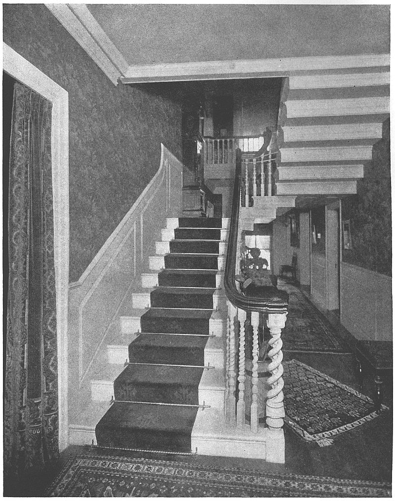 The house was sold by the Charles Jackson heirs in 1872 to Lucia J. Briggs, the wife of the Rev. George W. Briggs, who occupied it as a summer residence until 1898, when it was purchased by Charles L. Willoughby, of Chicago, for a summer home. Gardens were planned and planted. Joseph Everett Chandler, authority on the restoration of New England houses and author of books on the subject, was retained to supervise the work, and it is he we have to thank that so much was saved when it was converted into a gentleman’s estate. He it was who saw to it that the new windows, inner shutters, paneling, and many details, are in keeping with the original structure. He even saw to it that the Tory chimney, with its coping painted black, was saved and that the two lovely linden trees, said to have been planted by Edward Winslow’s daughter Penelope, were protected during the alteration. In tearing off the ell on the north side, a board was uncovered on which was painted “Built by William Drew 1820,” which indicates additions were made that year. The house was moved back thirty feet, raised five, porches were built, side doors, new rooms, and a cupola or, as some erroneously call it, a Widow’s Walk, were added.