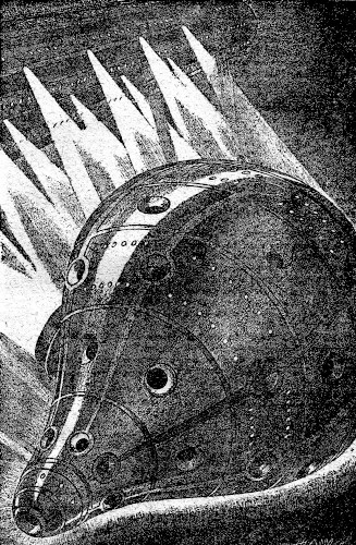 "Take your post, sir." The veteran saluted as punctiliously; and as he did so a semicircular desk rose around him from the floor—a desk whose most striking feature was an intricate mechanism surrounding a splintlike form so shaped as to receive a man's left arm.
