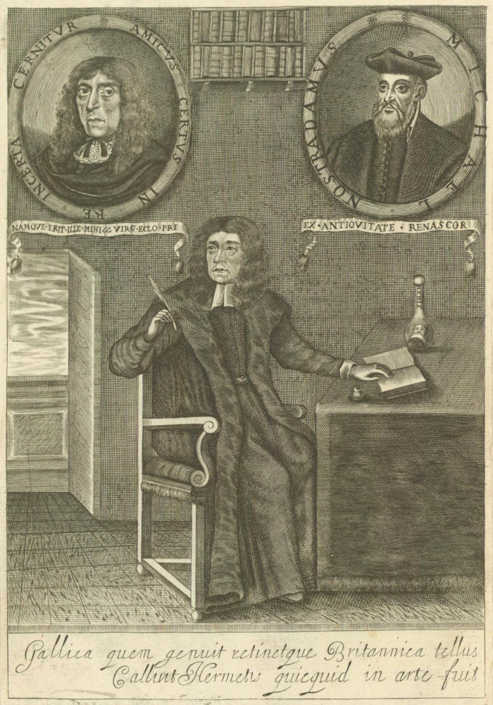 Michael Nostradamus, the most renowned and famous Astrologer, that hath been these many Ages, was born in St. Remy, a Town of Provence, in the year 1503. upon a Thursday, the 14th of December, about noon. His father was James Nostradamus, a Notary of the said Town, his Mother was Renata of St. Remy, whose Grandfathers by the Fathers and Mothers side, were men very skilfull, in Mathematick and Physick, one having been Physitian to Renatus, King of Jerusalem, and Sicily, and Earl of Provence, and the other Physition to John, Duke of Calabria, Son to the said Renatus, whence cometh that our Author saith in his Commentaries, that he hath received from hand to hand the Knowledge of Mathematicks, from his ancient Progenitors. After the death of his great Grandfather by the Mothers side, who first gave him a slight tincture, and made him in love with the Mathematicks, he was sent to School to Avignon. After that he went to Mount Pelier, to study Philosophy and Physick, till a great Plague coming, he was compelled to go to Narbonne, Thoulouse, and Bourdeaux, where he first began to practise, being then about 22 years of age. Having lived four years in those parts, he went back again to Monpelier, to get his degrees, which he did with a great deal of applause. Going to Thoulouse, he past through Agen, where Julius Cæsar Scaliger stayed him, with whom he was very familiar and intimately acquainted, though they fell out afterward; there he took to wife a very honourable Gentlewoman, by whom he had two Children, a Son and a Daughter, all which being dead, and seeing himself alone, he resolved to retire himself into Provence his Native Countrey. After he had gone to Marseille, he went to Aix, where the Parliament of Provence sitteth, and was there kept three years at the City Charges; because of the violent Plague that raged then in the year 1546. as you may read in the Lord of Launay’s Book, called the Theater of the World, who describeth that Plague according to the informations our Author gave him. Thence he went to Salon de Craux, a City distant from Aix one dayes Journey, and in the middle way between Avignon and Marseille; there he Married his second Wife Anna Ponce Genelle, by whom he had three Sons and one Daughter, the eldest was Michael Nostradamus, who hath written some pieces of Astrology, Printed at Paris in the year 1563.