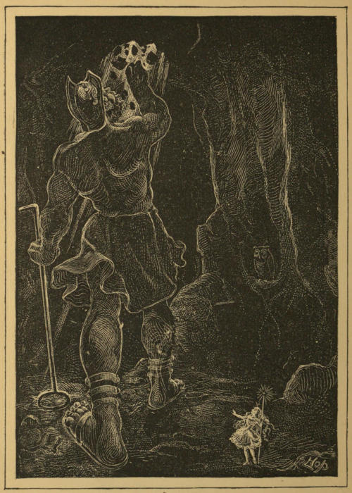 “It is made of several different metals; the helmet[161] of a mixture of two metals, called Truth and Honesty; the breastplate is also of two metals, Patience and Constancy; the sword, of the Hatred of all that is base and evil; and the shield, of the Hope of admission to our land; for this—to gain entrance here—is considered the highest privilege that can be granted to any mortal. But I ride on an errand for the King, and must not delay.”