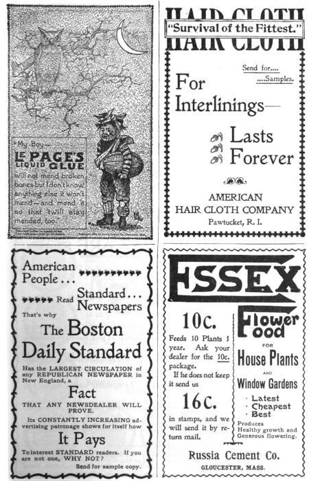 The Black Cat is sold by Newsdealers. If yours hasn’t it, and won’t get it for you, get another newsdealer. If you haven’t a dealer, send us fifty cents and we will mail you for a whole year, The Black Cat, postpaid. The Shortstory Publishing Co., Boston, Mass.