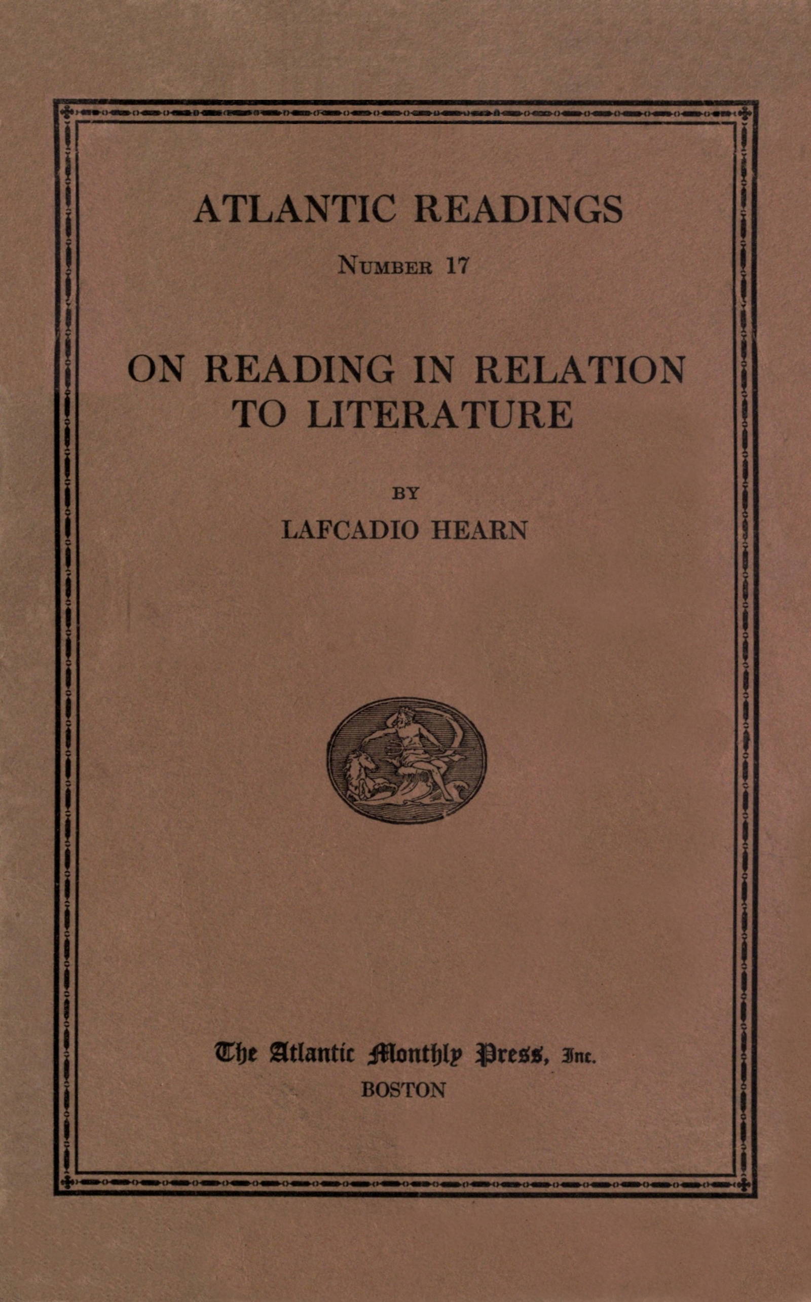 As the term approaches its close, I wish to keep my promise regarding a series of lectures relating to literary life and work, to be given independently of texts or authorities, and to represent, as far as possible, the results of practical experience among the makers of literature in different countries. The subject for this term will be Reading—apparently, perhaps, a very simple subject, but really not so simple as it looks, and much more important than you may think it. I shall begin this lecture by saying that very few persons know how to read. Considerable experience with literature is needed before taste and discrimination can possibly be acquired; and without these, it is almost impossible to learn how to read. I say almost impossible; since there are some rare men who, through a natural inborn taste, through a kind of inherited literary instinct, are able to read very well even before reaching the age of twenty-five years. But these are great exceptions, and I am speaking of the average.