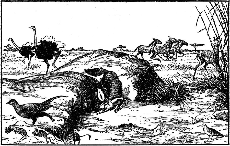 Das Kamel kann unbeschadet fünf, im Notfalle aber auch zehn, ja zwölf Tage ohne Wasser aushalten. Wie andere Wüstentiere, wittern sie aber das Wasser auf erstaunliche Entfernung, und von Elefantenherden wird behauptet, daß sie durch niedergegangene Regengüsse auf Hunderte von Kilometern geradezu magnetisch angezogen werden, obgleich der Elefant ja kein Wüstentier ist. Den Flug- und Steppenhühnern, den Wüstentauben u. a. ermöglicht es ihr großartiges Flugvermögen, alltäglich weite Strecken zum Aufsuchen der gewohnten Tränkplätze zu durchmessen, und die Kriechtiere der Wüste oder Trockensteppe haben überhaupt nur ein ganz geringes Wasserbedürfnis. Wo aber jahrelang aller Niederschlag ausbleibt, wo jahrelang mit ungehemmter Glut die Sonne herniederbrennt, da erstirbt schließlich alles Tierleben, und es dauert dann Jahrzehnte, bis ein solcher Platz sich wieder bevölkert. So ist alles dreimal gesiebt, was in der Wüste sein Leben zu fristen vermag. Die Vögel sind auch hier wieder den Säugetieren gegenüber entschieden im Vorteil, denn sie haben eine viel geringere Wasserausdünstung, da sie keine Schweißdrüsen besitzen, da ihr Gesicht keine fleischigen, beständig anzufeuchtenden Lippen und Nasenlöcher enthält, sondern hornige Kiefer, und da sie ihren Harn nicht in flüssiger, sondern in kristallinischer Form ausscheiden. So stark schwitzende Tiere wie Pferde können es in der echten Sandwüste nie lange aushalten, und für Wildrinder mit ihrem sehr wasserhaltigen Kot und ihren ewig triefenden Mäulern ist die Wüste überhaupt kein Aufenthalt. Wohl finden sie sich noch in nicht zu trockenen Steppengebieten, aber ihr eigentlicher Wohnort ist der feuchte Sumpfwald. Dagegen gibt es Schnecken in der Wüste, soweit sich noch bescheidenster Pflanzenwuchs findet. Sie besitzen ja das famose Mittel, sich einfach in ihrem Hause einzukapseln, wenn die Sache gar zu ungemütlich wird, und in jahrelangem Dauerschlafe ruhig abzuwarten, bis ein Regenguß sie wieder ins Leben zurückruft und ihnen gleichzeitig den Tisch deckt. Eine algerische Wüstenschnecke, die im Londoner Museum zu Schauzwecken auf einem Kartonblatt angeleimt[70] war, erwachte nach vier Jahren zu neuem Leben, als sie zufällig mit Feuchtigkeit in Berührung kam!