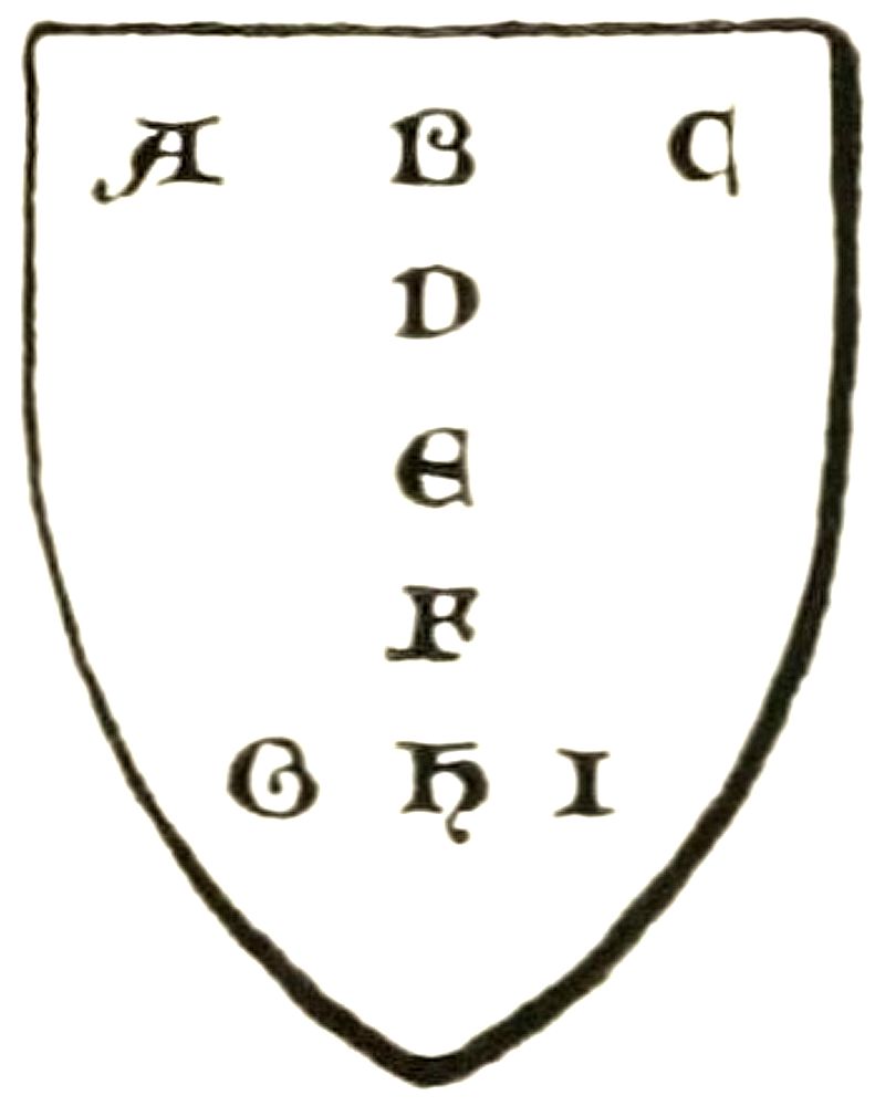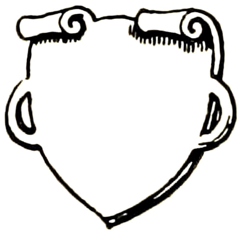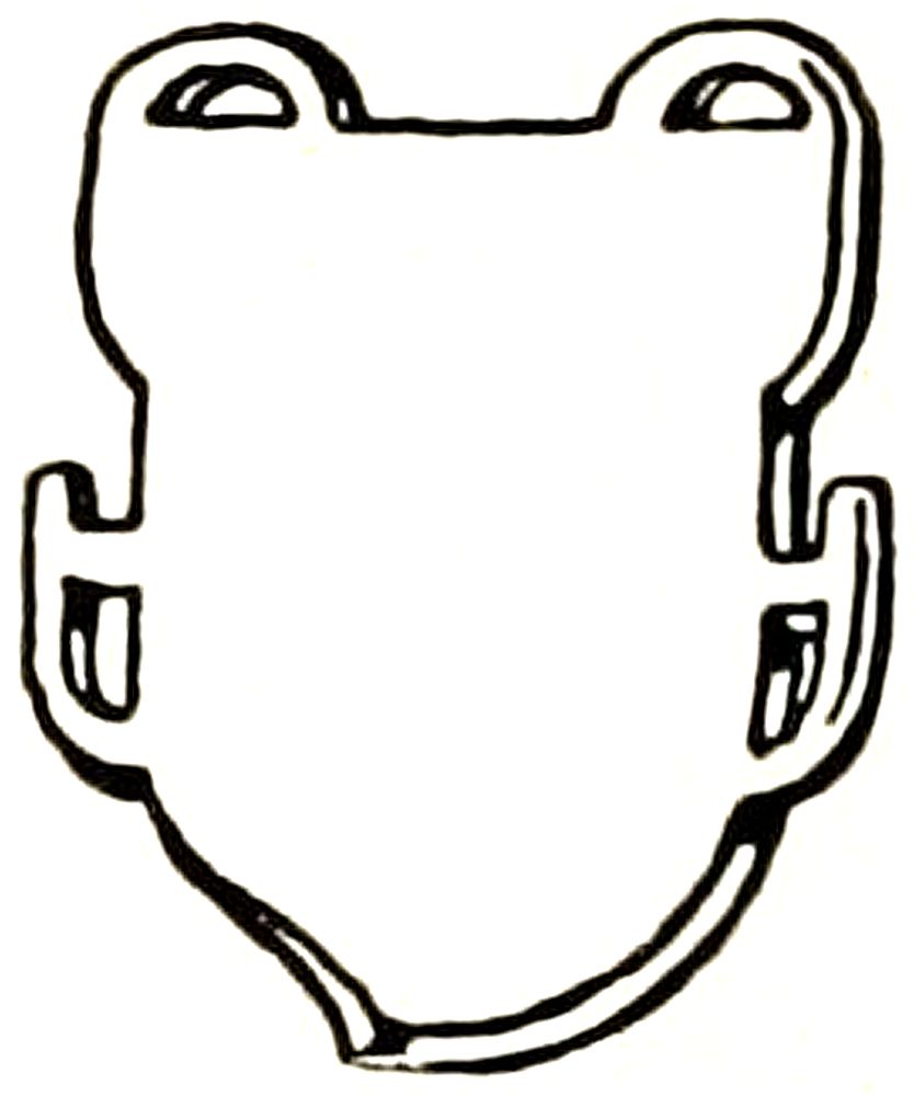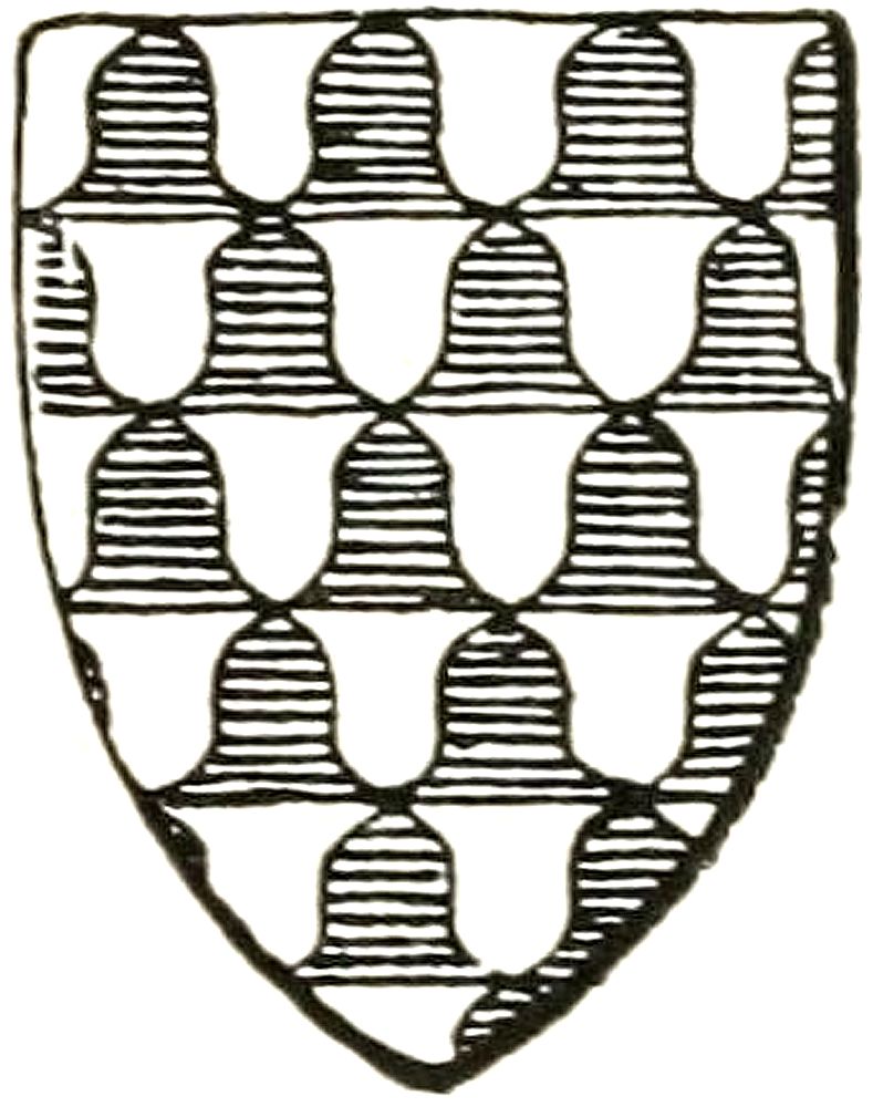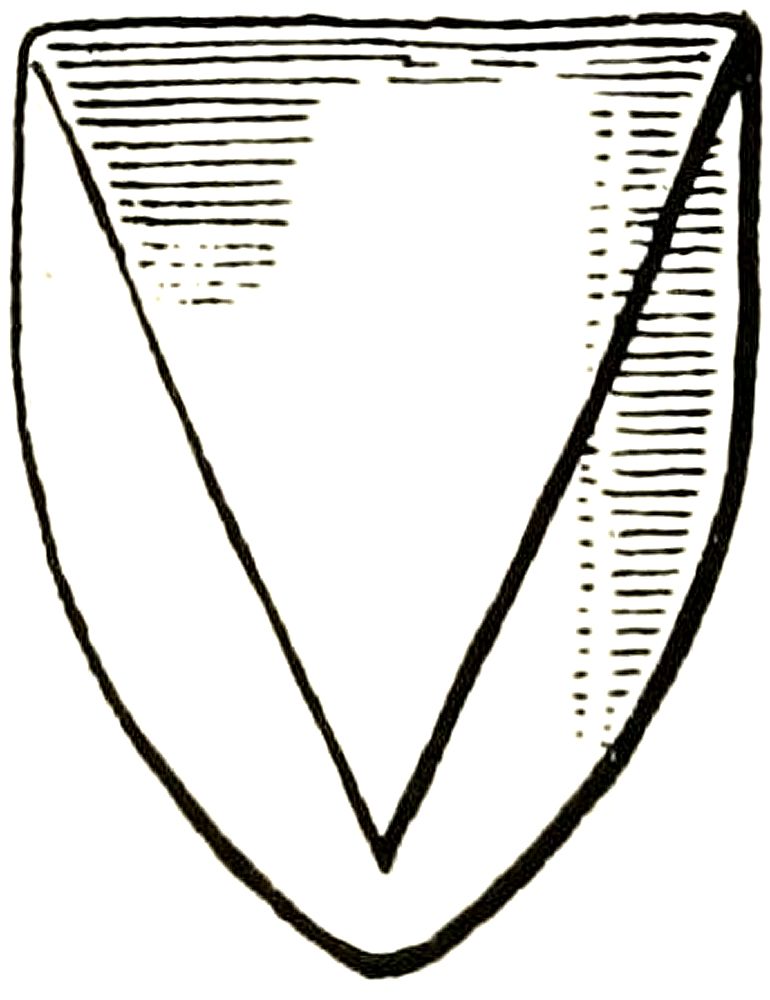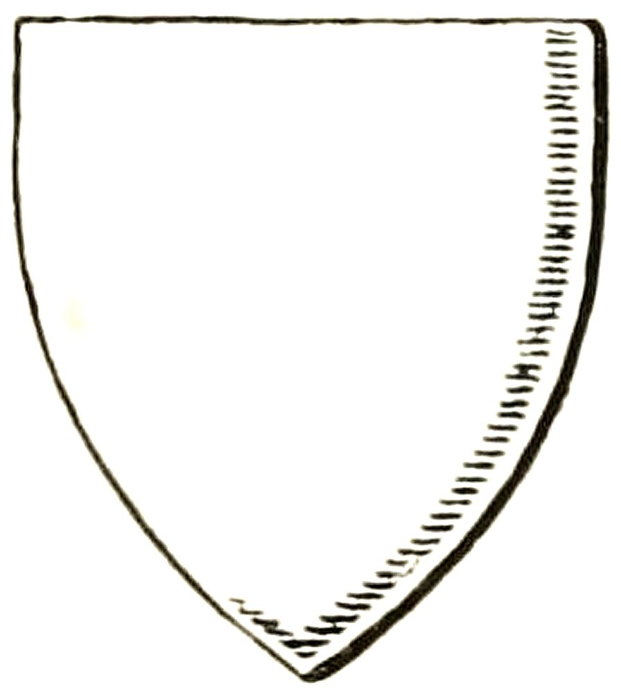 Water Bouget.—This, like the maunche, is an instance of the conventionalization of an actual thing into a shape that bears but remote likeness to the original form. Although there are instances in which its derivation from water carriers, its undoubted origin, is more nearly suggested, its heraldic form was clearly established in the fourteenth century, chiefly in connexion with the family of Bourchier, which furnished so many persons of note to mediaeval history.