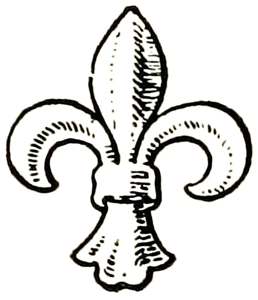 Escarbuncle (Fig. 256).—Is derived from the strengthening bands of the shield which the mediaeval metal worker’s decorative instinct made into beautiful ornament even as it did the hinges of a door. The metal plates radiating from the central boss of the shield terminated in foliated forms of great beauty, the fleurs-de-lis of the present charge, while the hollow ring in the centre enabled it to fit over the boss. Many beautiful examples exist of this piece of armour become the Badge of Anjou, worn by Henry II.