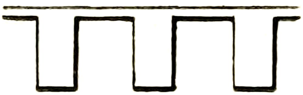 The crown vallery is intended to represent palisades, as in Fig. 253, and when the palisades are more definite and are fastened to the rim instead of rising out of it, the crown is palisado instead of vallery (Fig. 254).