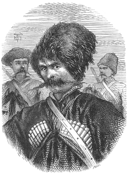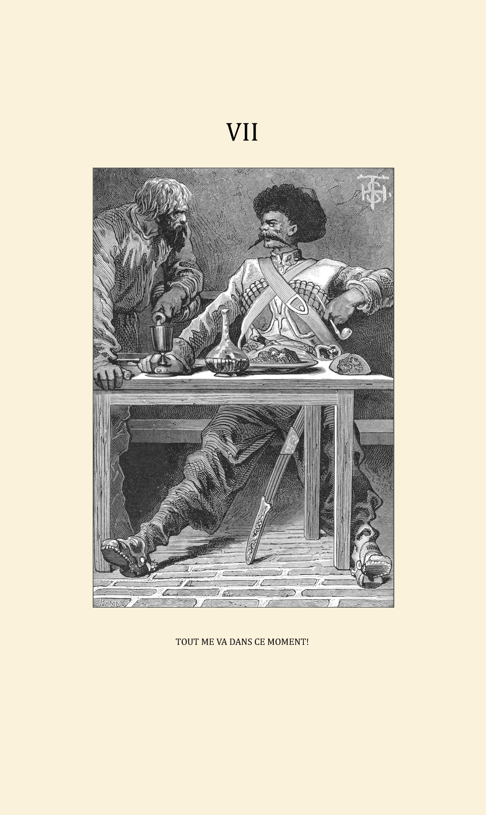[2] La Setch était une île sur le Dniéper où les cosaques Zaporogues (ce qui veut dire au delà des rapides du Dniéper) tenaient leur camp, où les femmes n’étaient pas admises, et d’où partaient de terribles razzias, principalement sur les terres des Tartares et des Turcs. Gogol en a fait une belle description dans son Tarass Boulba.