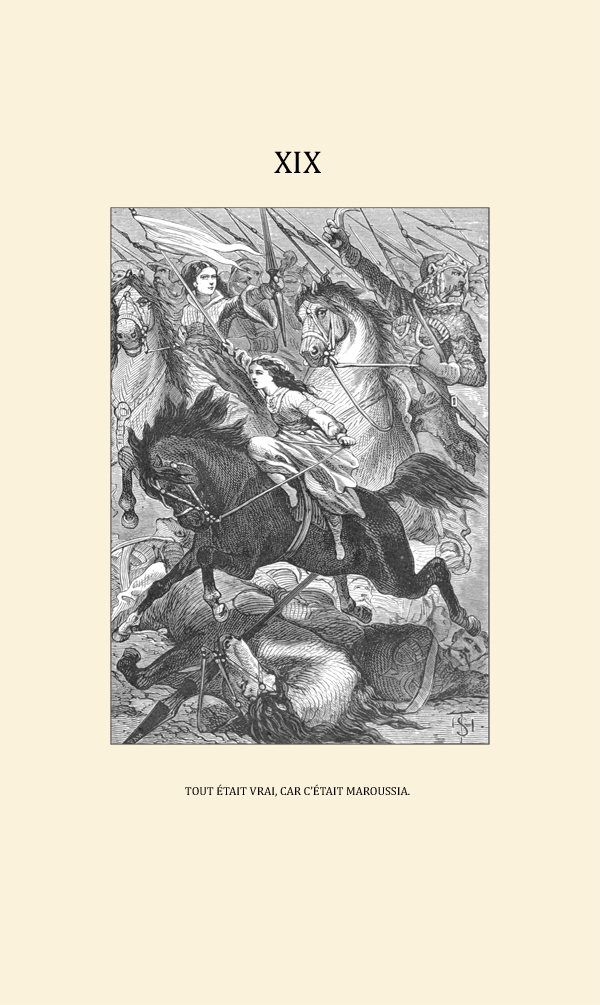 Le cavalier rend la main à son cheval, poursuit sa route et disparaît, comme un homme trompé dans son attente. Maroussia n’a été pour lui qu’une ombre entrevue sur sa route.