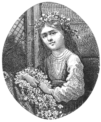 Une petite, toute petite fille, à la chevelure blonde, aux grands yeux extrêmement brillants, aux lèvres 16 purpurines, semblait seule entièrement absorbée par ses propres affaires. Elle prenait des brins de jonc dans son tablier et en tressait une jolie natte.
