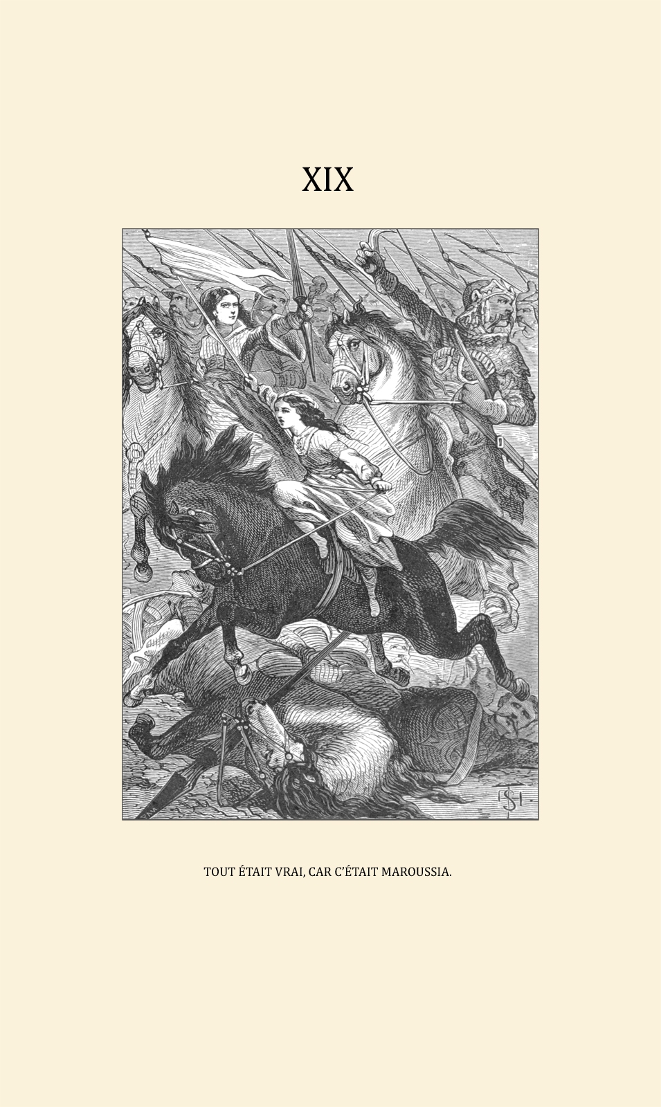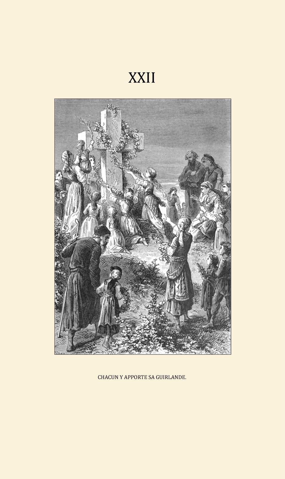 Tout cela s’est passé il y a bien, bien longtemps. Après cent, deux cents ans peut-être, il en reste une légende. Aujourd’hui encore, sur une colline rapportée, faite de main d’homme, la plus haute de toutes celles du même genre qu’on rencontre dans ce pays, vous pouvez voir une grande croix de granit rose. Sur cette croix a été gravé avec la pointe patiente d’un poignard ce nom: MAROUSSIA.