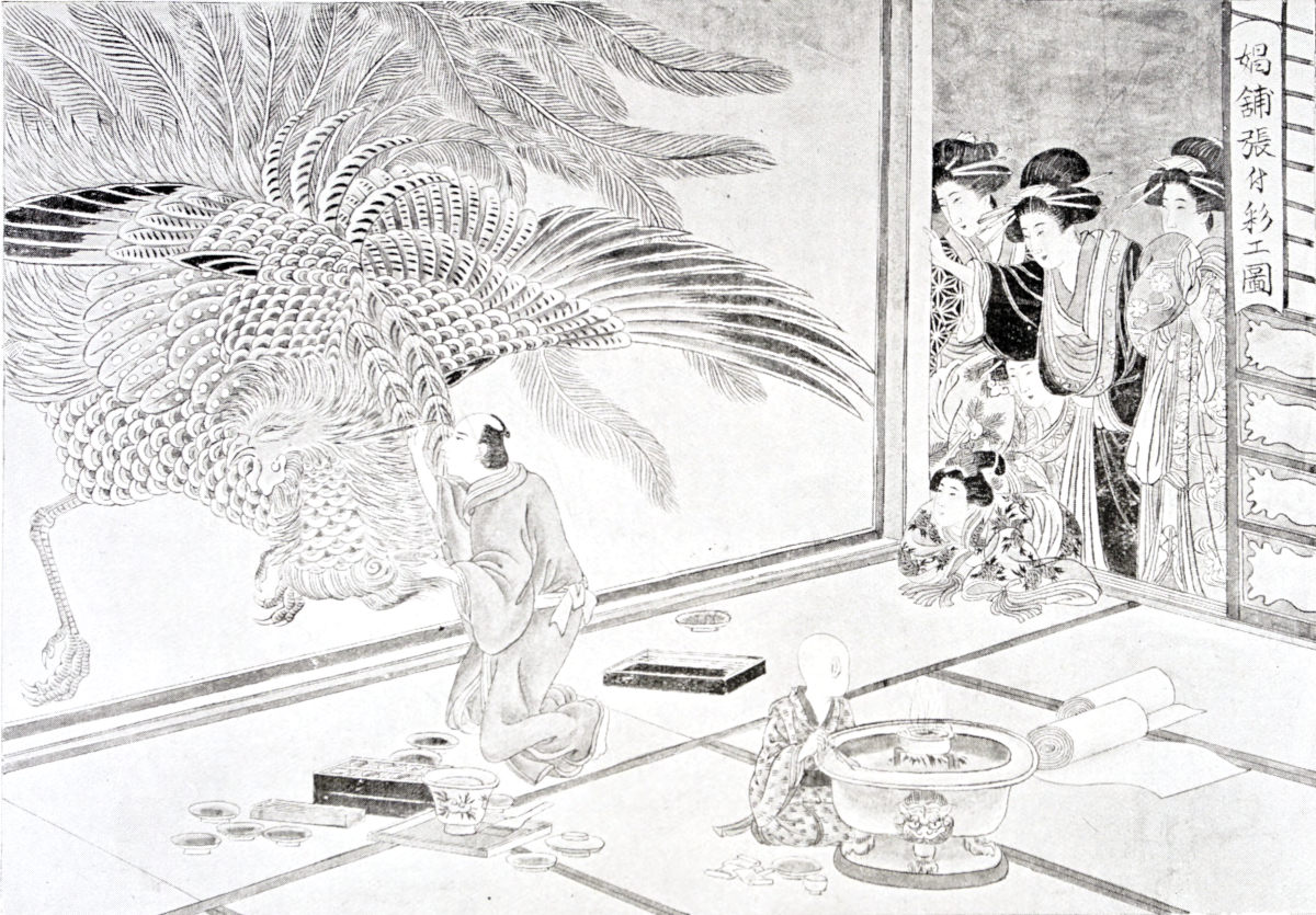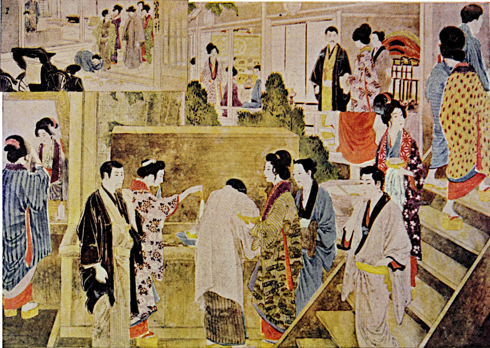 This poem, which the little Kamuro so proudly wrote, is a proof that the word oira (“I,” or in connection with no or ga “my” or “mine”) had been corrupted to oiran in the Yoshiwara. It would therefore appear that the present word oiran, which is universally used, arose from the fact that the attendants of courtesans anciently spoke of them as “oiran” (oira no ane = my elder sister).”
