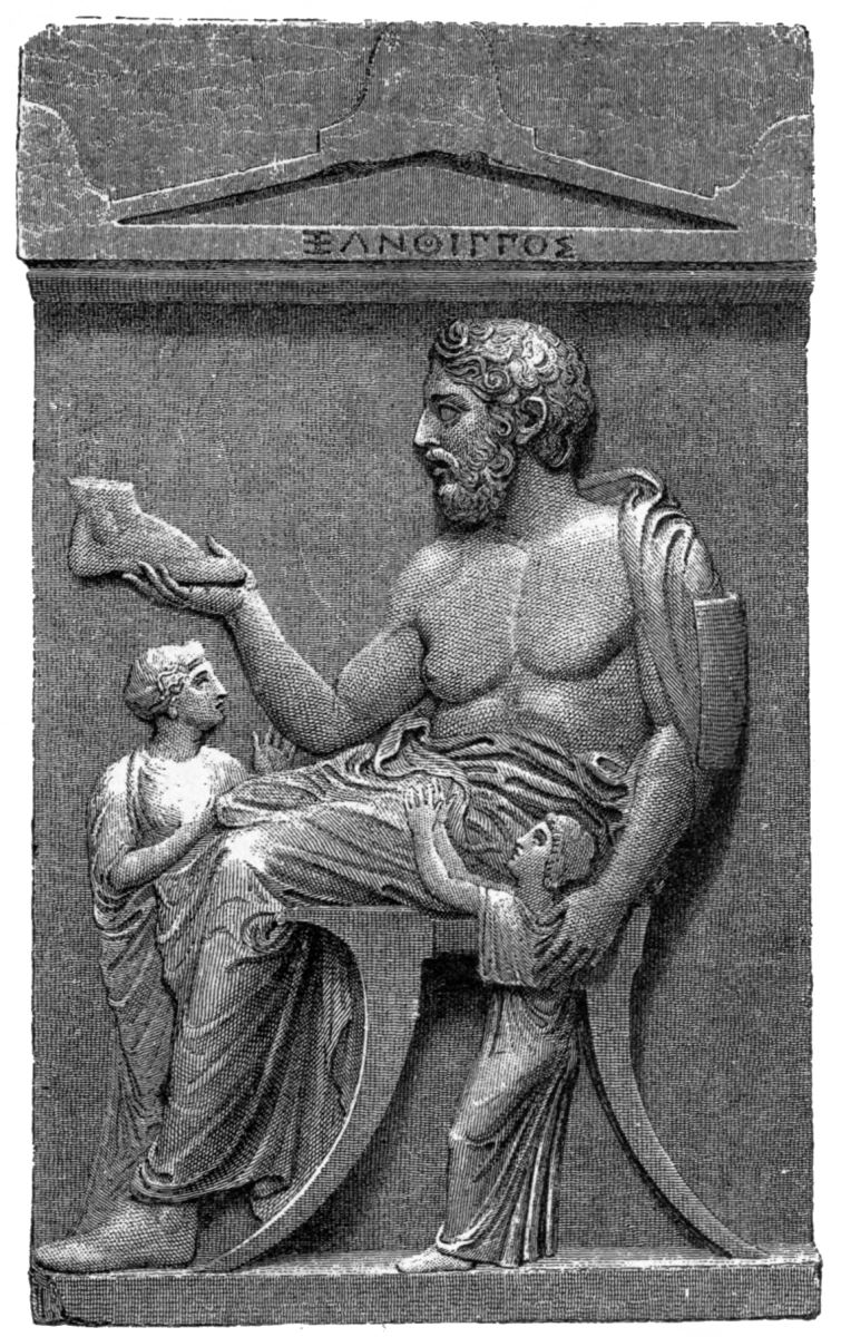 | Portraits of the dead originate in Ionia, 133. Portraits at Athens, 134; their ideal character, 134. Portrait statues, 135; on horseback or on foot, 136; female figures, 137. The dead as Hermes, 138. Statues of mourning women, 139. Portraits on stelae, first period, 140; Aristion, Lyseas, 141; stelae of youths, 143. Second period, stelae of citizens, 145; stelae of warriors, 146; Dexileos, 147; young athletes, 149; hunters, 152; students, 153; shipwrecked men, 154; children, 154; matrons, 157; girls, 158; priestesses, 160. |