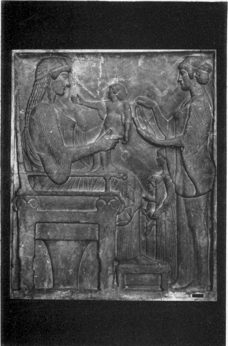 | Distinction of tombs from commemorative tablets, 87. Lines of descent from Spartan reliefs, 88. Athenian banqueting reliefs, 88. Customs of sitting and reclining, 89. Tegean relief, 90. Presence of votaries, 91. Asklepian tablets, 92. Tablets to heroes and to ancestors, 93. The hero as horseman, 94; accompanied by lady, 98. Votive tablets from Tarentum, 100. The hero as foot-soldier, 102; unarmed, 103. |