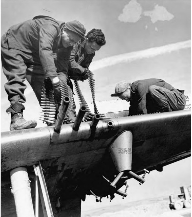 A FIGHTER PILOT, Standing beside his plane in England, wearing an oxygen mask and helmet equipped with earphones. Over his leather flying jacket is a life preserver. A number of young men from the United States joined the Canadian and British air forces before America’s entry in the war. When the U. S. declared war these pilots were transferred to the U. S. air force. The strength of the U. S. air force in 1940 was about 43,000 men and 2,500 planes. In early 1944 there were 2,300,000 men and 80,000 aircraft.