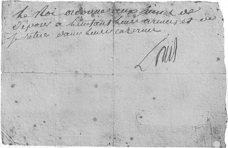 Order given on 10th August, 1792, to the Guard at the Tuileries to Cease Fire and return to Barracks
