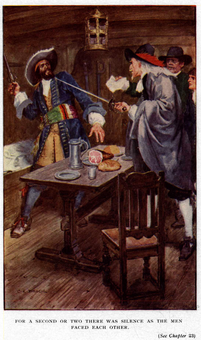 Slocum and his confederates were not destined to be hanged after all. It was discovered one day that they had broken prison, and they were never captured. Years afterwards, when Martin was a captain in the King’s Navy, he was accosted one day in Portsmouth by a wretched-looking beggar, who suddenly stopped in the midst of his whining plea for help and slunk off rapidly round the first corner.