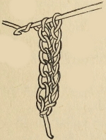 Tricot crochet is commenced with a chain the exact length and finished off with single stitch.