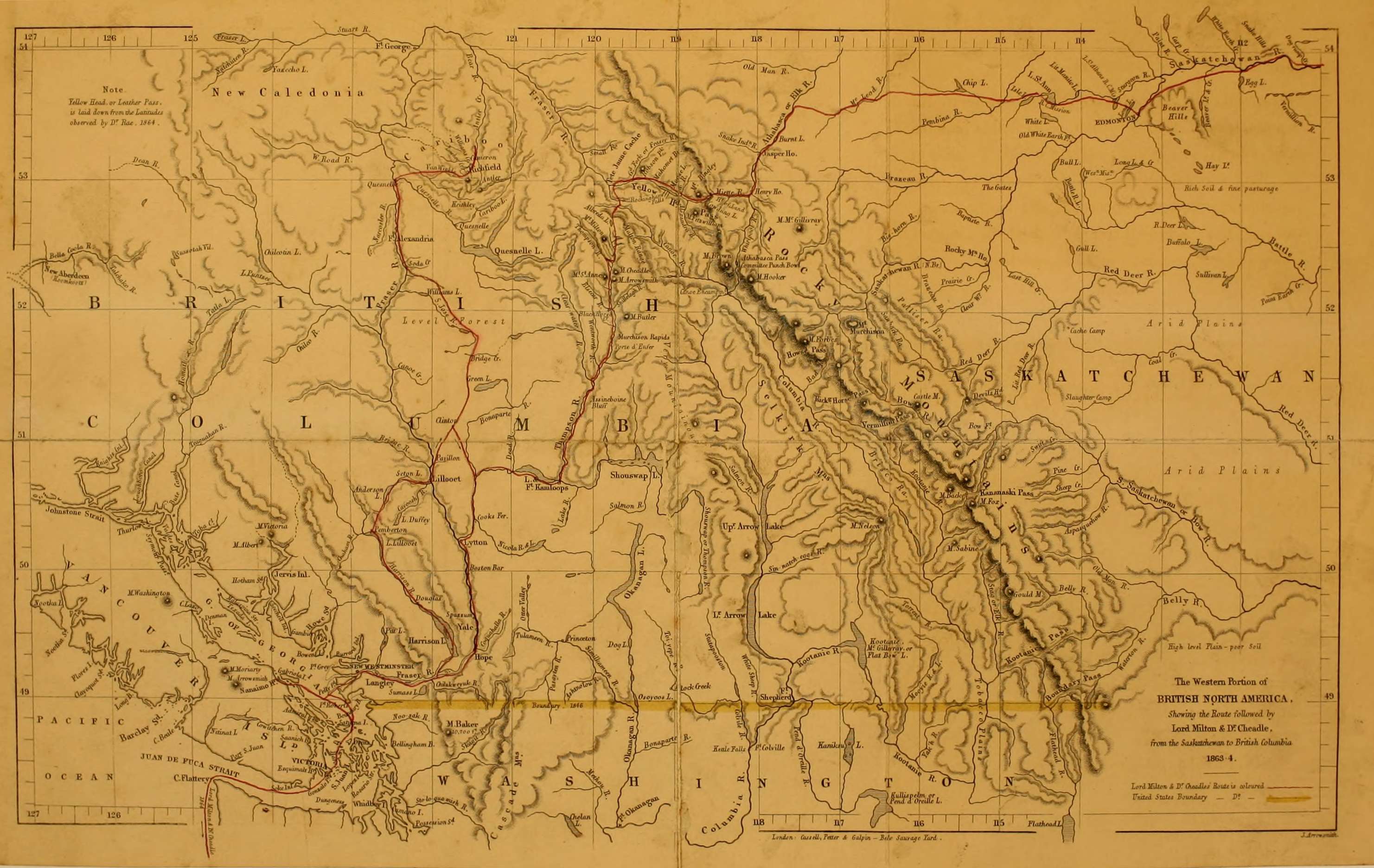 UNDERTAKEN WITH THE VIEW OF EXPLORING A ROUTE ACROSS THE CONTINENT TO BRITISH COLUMBIA THROUGH BRITISH TERRITORY, BY ONE OF THE NORTHERN PASSES IN THE ROCKY MOUNTAINS.
