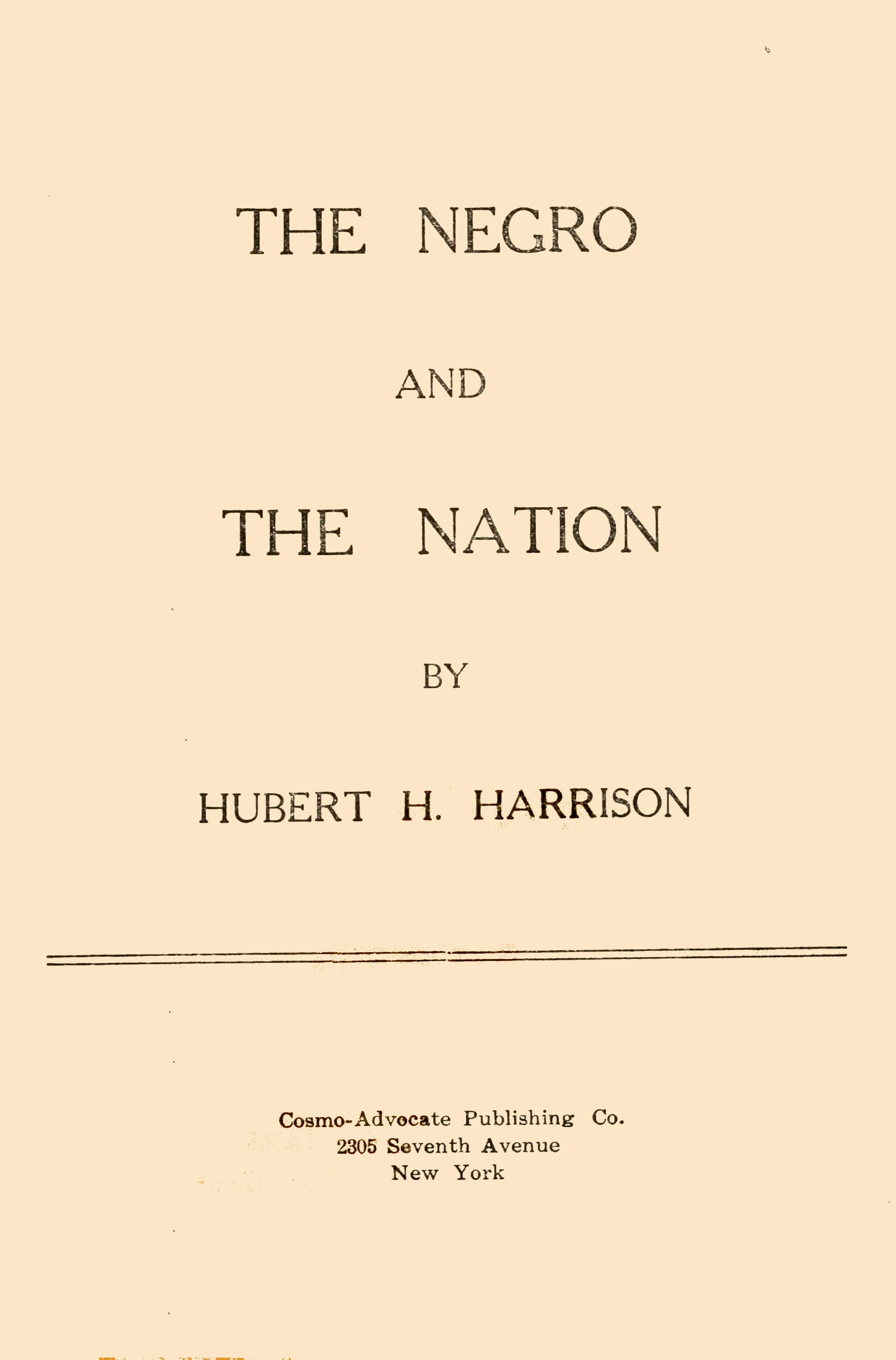 This little book is made up of articles contributed several years ago to radical newspapers and magazines like The Call, The Truth-Seeker, Zukunft, and The International Socialist Review. They are re-published in this form, partly to preserve a portion of the author’s early work, but mainly because they help to throw into strong relief the present situation of the Negro in present day America, and to show how that situation re-acts upon the mind of the Negro. That is the great need of the Negro at this time.