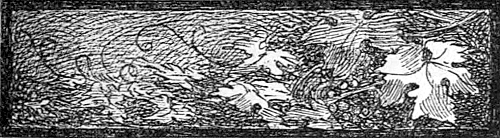 Purple draperies of Clematis (Virgin’s Bower), in many shades, from the deepest violet softening into grey, make the old brick walls beautiful; or the same Clematis droops [Pg 174]from trellises, or clambers up the trees in many parts of the garden. Almost always it so happens that the tender green of Vines mingles with the purple. There is something almost unpleasing in the arrangement of the four petals of Clematis Jackmanni! but much must be forgiven for the sake of such grand colouring. No climbing plant comes near the Vine, perhaps, in perfect grace and beauty of line. The fruitful Vine gives delight to the eye in far larger measure than Virginia Creeper, or any other of our green hangings upon the walls of a house. The Vine is more obedient and yet more free, and its intelligence is greater. Thinking of the Vine as of a person, one would say that her foliage shows all the variety of genius. Scarcely will you find two leaves alike, in shape, or size, or colour. The youngest leaves are half-transparent and golden-green, or reddened by the sun; on some the light lies cold and grey. If the Vine is trained round the window, the leaves seen from within outspread against the light glow like green fires. The very shadiest recesses of the Vine are full of light. And then the[Pg 175] tenderness and strength of her slender beautiful tendrils! How they reach out like sentient hands! and when they have found, how strong and firm their clasp! Then, who does not know and love the curious aroma of her small green flowers, bringing back to memory the smell of a Southern vineyard? Very soon, now, autumn suns will swell the clustered fruit, and purple bloom will begin to show between the leaves. A Vine is one of the only plants whose every leaf, well nigh, may be painted with care in a picture, and yet not seem too much made out. Yet rarely indeed can human hand give the fine thinness and yielding texture of a Vine leaf!
