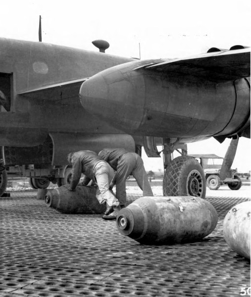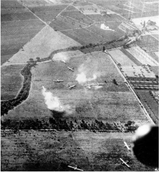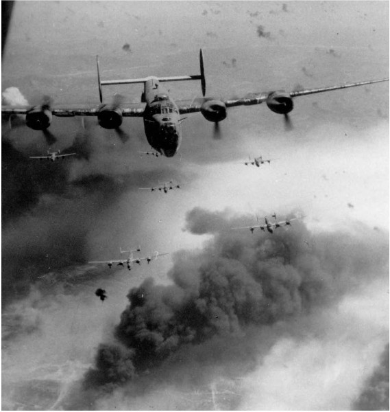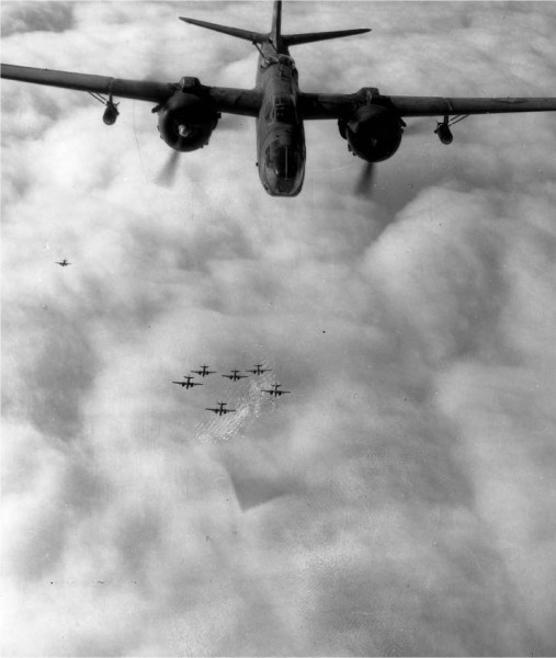 B-25’S OVER THE WESTERN DESERT IN EGYPT. The U. S. Air Forces was active in the Middle East several months before the Allied landings in North Africa. The first mission of these bombers was against the enemy-occupied port of Matruh on the coast of Egypt in July 1942. (Medium bombers, North American B-25 Mitchell.)