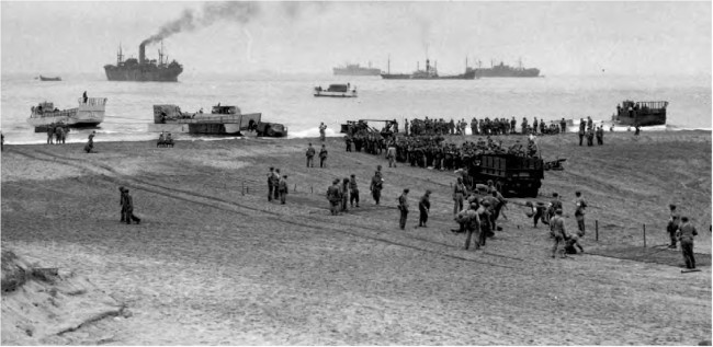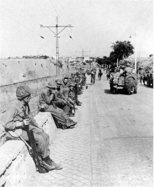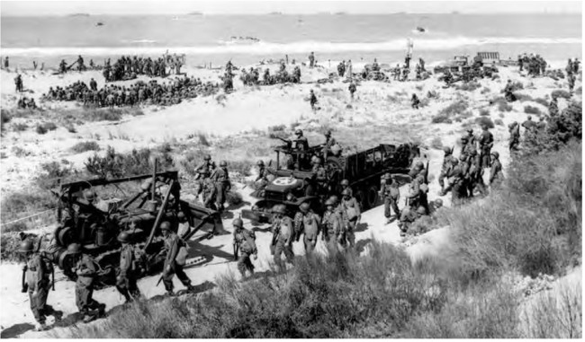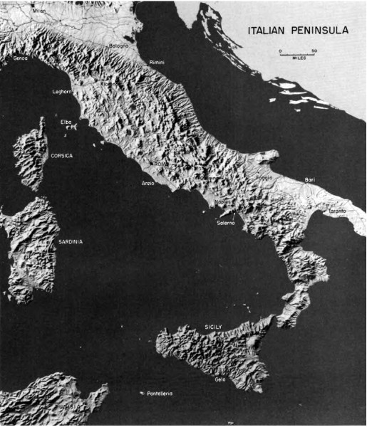 But the Allied forces were closing in. After attacking and turning the Mareth position, the British Eighth Army defeated the enemy there and pursued him along the coast as far as Enfidaville, less than fifty miles from Tunis. Accelerated Allied air and naval attacks choked off the enemy’s supply and weakened his resistance. At the same time the American II Corps was shifted northwest to a new sector on the left of[3] the British First Army. Then after severe infantry fighting the American II Corps made an armored thrust to Mateur, and after a pause it pushed tank forces east to the sea, separating Bizerte from Tunis. Farther south the British First Army drove directly toward Tunis. On 7 May both Bizerte and Tunis were occupied and by 13 May Axis capitulation was complete. The Allies had achieved their initial objective of opening the Mediterranean route to the Middle East and seizing bases in North Africa. At the same time they had inflicted a major defeat on the Axis Powers.