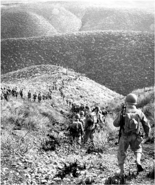 In the volumes of UNITED STATES ARMY IN WORLD WAR II now being prepared by the Office of the Chief of Military History, Department of the Army, it is possible to include only a limited number of pictures. A subseries of pictorial volumes, of which this is one, has been planned to supplement the other volumes of the series. The photographs have been selected to show important terrain features, types of equipment and weapons, living and weather conditions, military operations, and various matters of human interest. These volumes will preserve and make accessible for future reference some of the best pictures of World War II. An appreciation not only of the terrain on which actions were fought, but of its influence on the capabilities and limitations of weapons, in the hands of both our troops and the enemy’s, can be gained through a careful study of the pictures herein presented. Appreciation of these factors is essential to a clear understanding of military history.